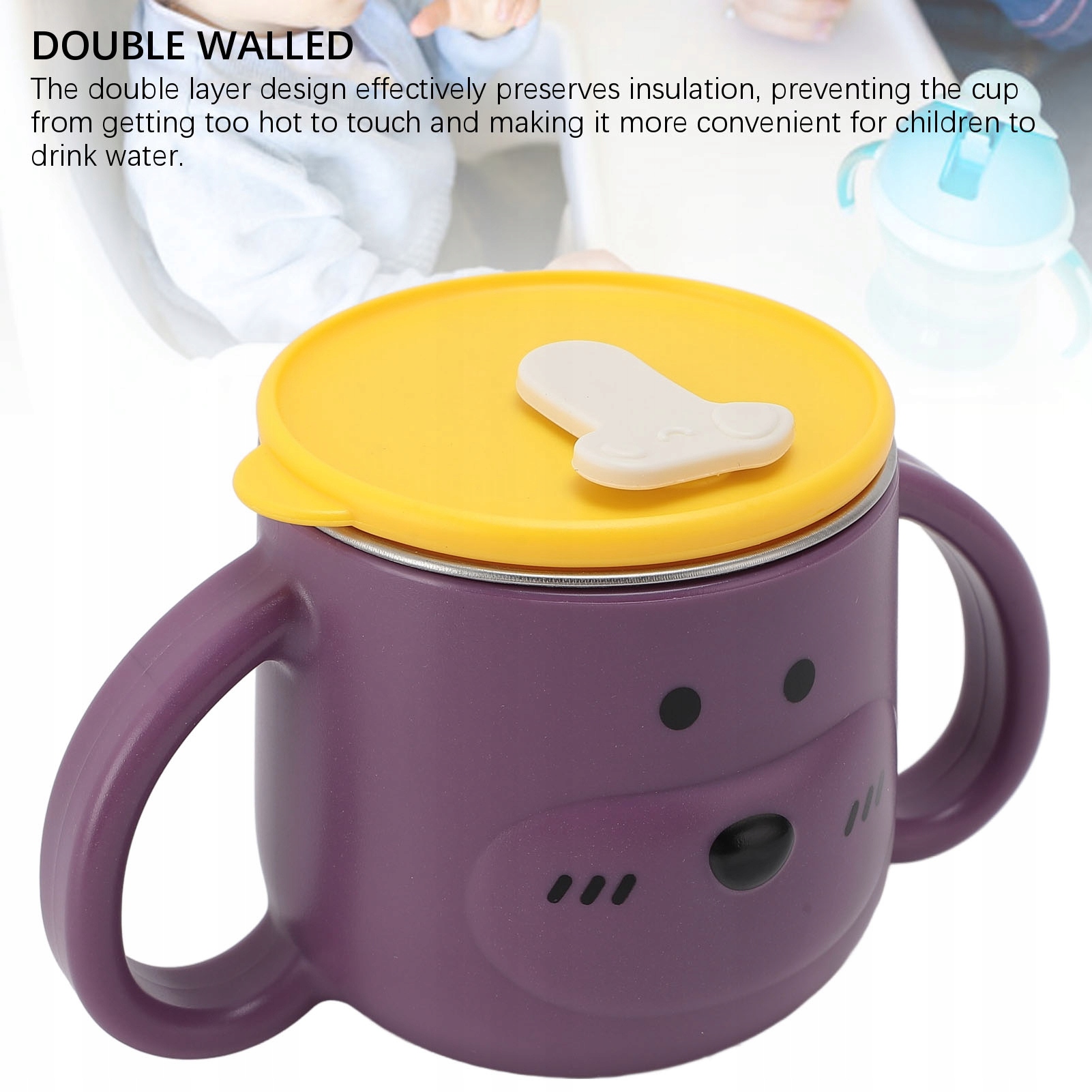 2. Подвійна стінка: подвійна шарувата структура ефективно зберігає ізоляцію, запобігаючи тому, що кружка стала занадто гарячою на дотик, і збільшуючи воду, зручніше для дітей.