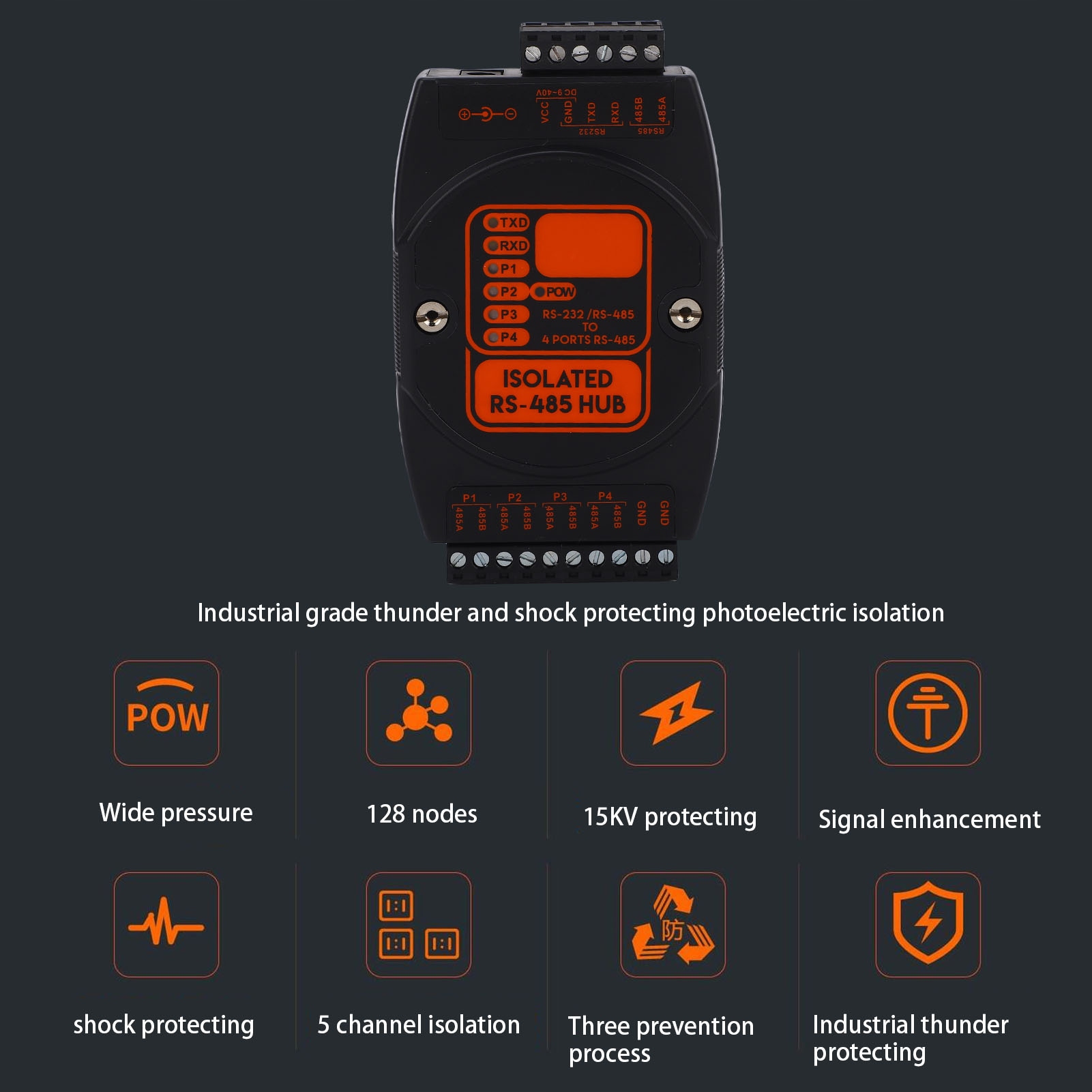 5. Практичний та портативний: 4 промислові порти ізольовані ABS Прийнятий концентратор, може, розмір, легкий та портативний для перенесення, atwly у встановленні та використанні