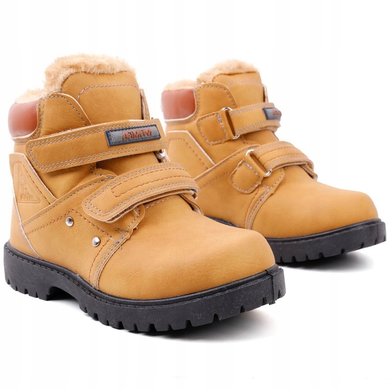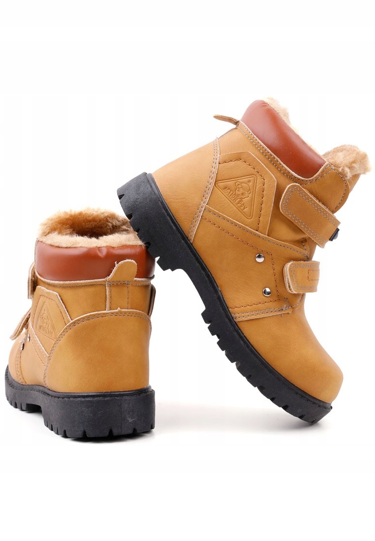 Хлопчики, на плоскій підошві з протектором. Верхня досягає щиколотки. Зарештований двома липучками спереду. Зроблено з синтетичного нубука. Оформлений зшиванням. Сильно утеплений. Ідеальні черевики щодня.