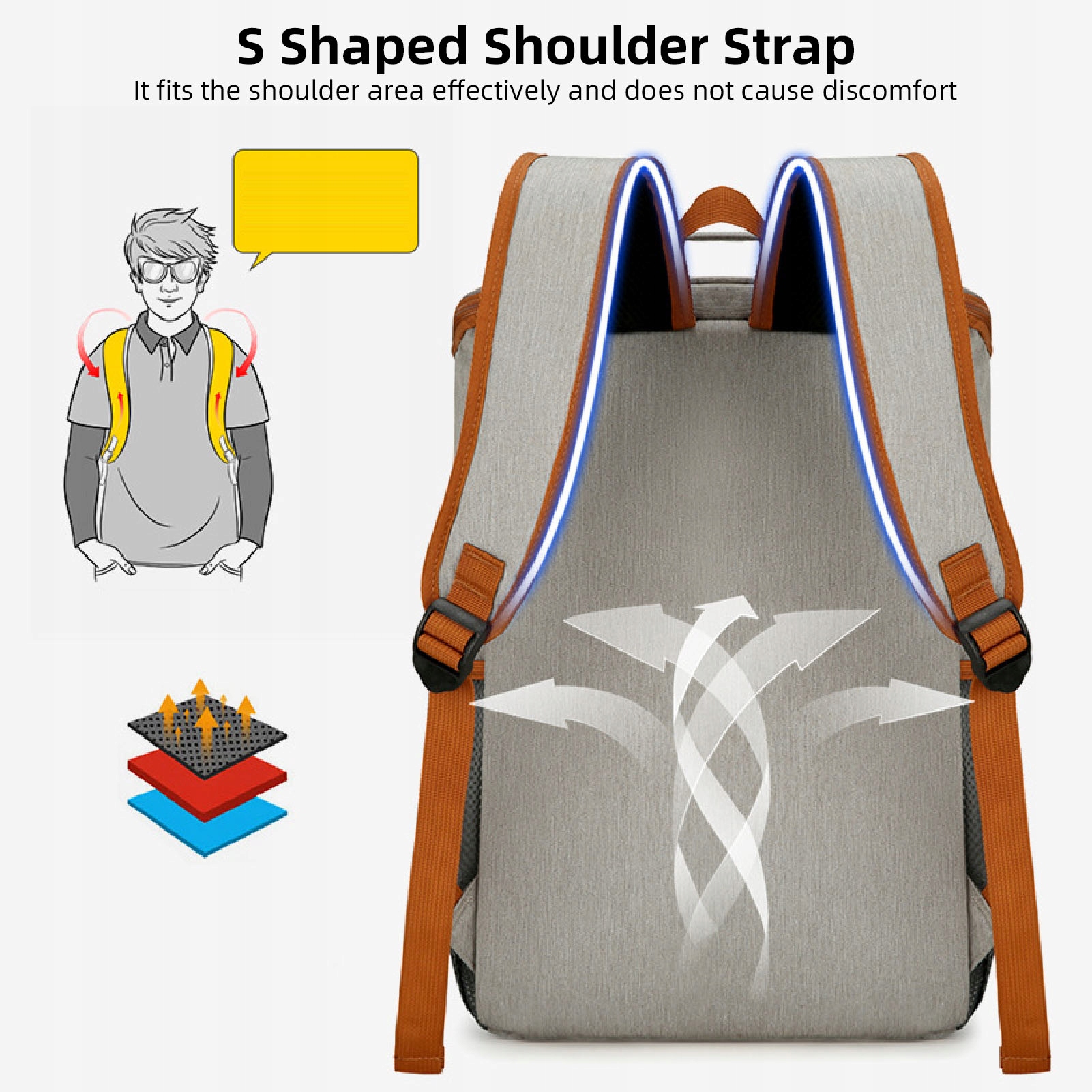 5. Універсальний носіння: пропонуючи одну руку, рюкзак та портативні варіанти, ця більш ходьба сумка адаптується до ваших потреб та різних сценаріїв подорожей. Метоподібні, дихаючі сітчасті ремінці зменшують навантаження плеча, забезпечуючи комфортний досвід, а його легка конструкція ще більше зменшує навантаження на подорож