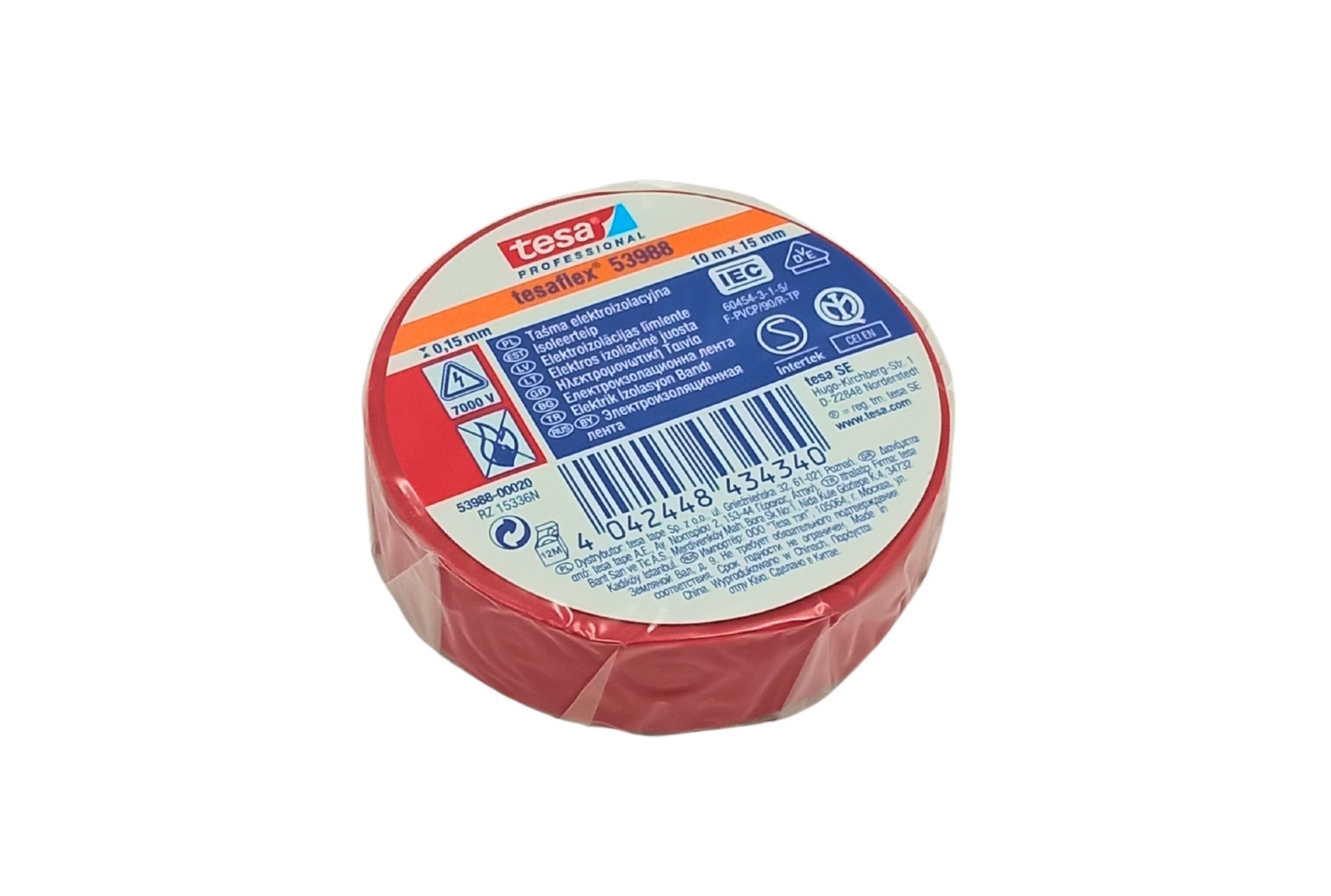 Ізоляційна стрічка Tesaflex 53988 — надійний продукт, призначений для електриків, механіків та інших користувачів. Стрічка має відносно товсту основу та характеризується високим ступенем гнучкості та дуже хорошою ефективністю склеювання (навіть на сталевих поверхнях та при низьких температурах). Ізоляційна стрічка ПВХ підходить не тільки для ізоляції та маркування проводів, а й для ремонту та пакування. Стрічку можна використовувати для маркування, оскільки вона доступна в різних кольорах (червона, синя, коричнева, чорна, біла, сіра, зелена, жовта та жовто-зелена). Tesaflex 53988 відповідає всім чинним стандартам і простий у використанні.