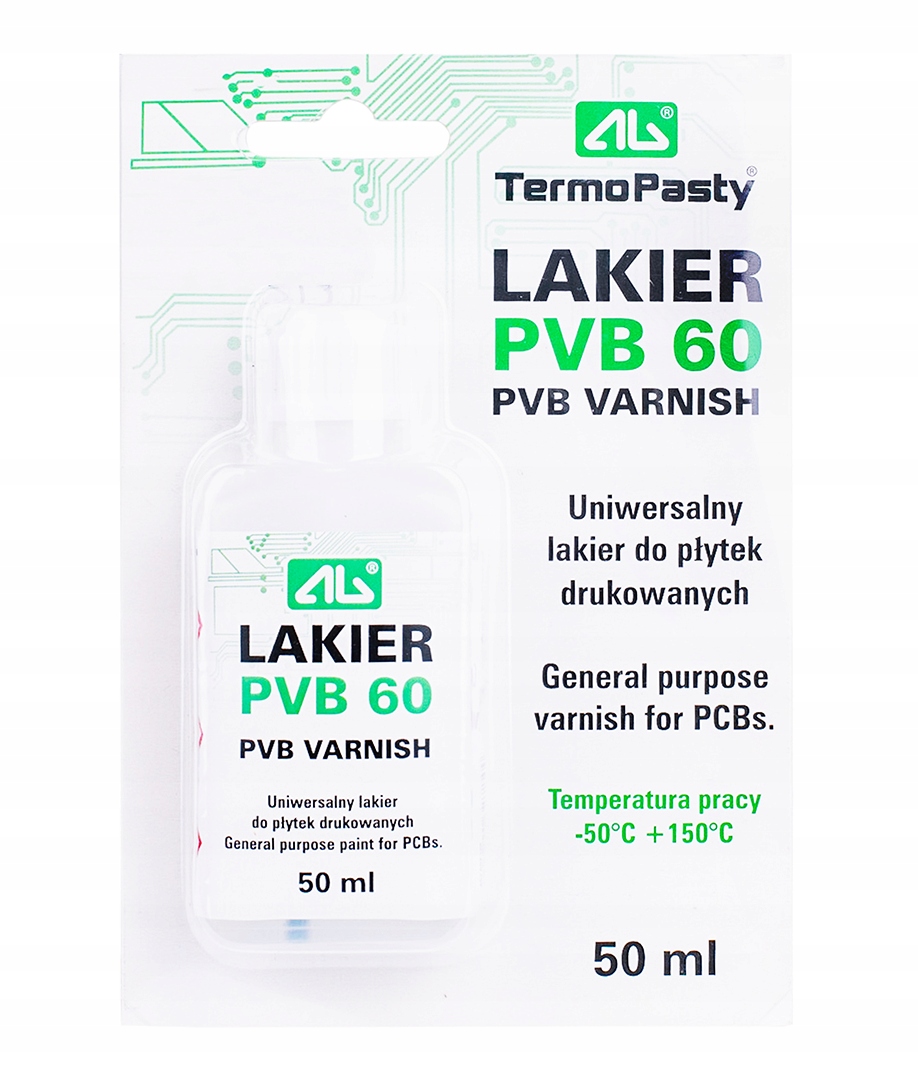 Лак PVB 60 від AG Termopasty також використовується для ізоляції кабелів, проводів, трансформаторів високої напруги та електричних котушки двигуна. Він стійкий до розбавлених кислот, лугів і атмосферних факторів.