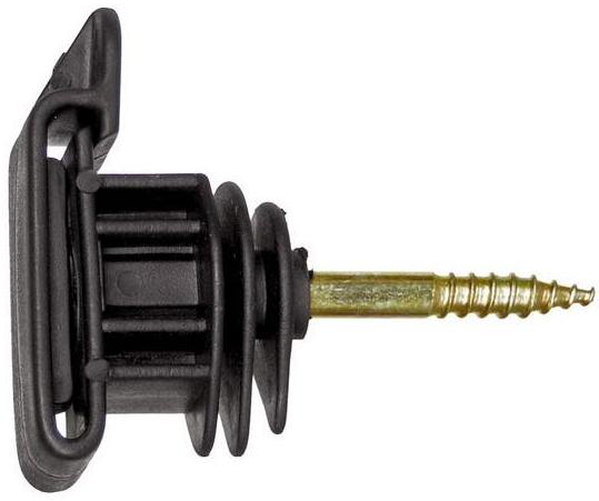Якісний ізолятор з оцинкованим штифтом для стрічки з максимальна ширина 400 см. Спеціальна ізоляторна засувка утримує стрічку, що дозволяє її натягнути, запобігає скручування та пошкодження. Ізолятор - це конструктивний елемент всієї огорожі, який не проводить електричний струм. Використовується для кріплення провідника до дерев’яного стовпа. Призначений для стрічки, але провідником також може бути тонкий дріт, оплетка або волосінь. Він оснащений оцинкованим дерев’яним шурупом, який забезпечує легкий монтаж і усуває необхідність свердлити отвори в стовпах.