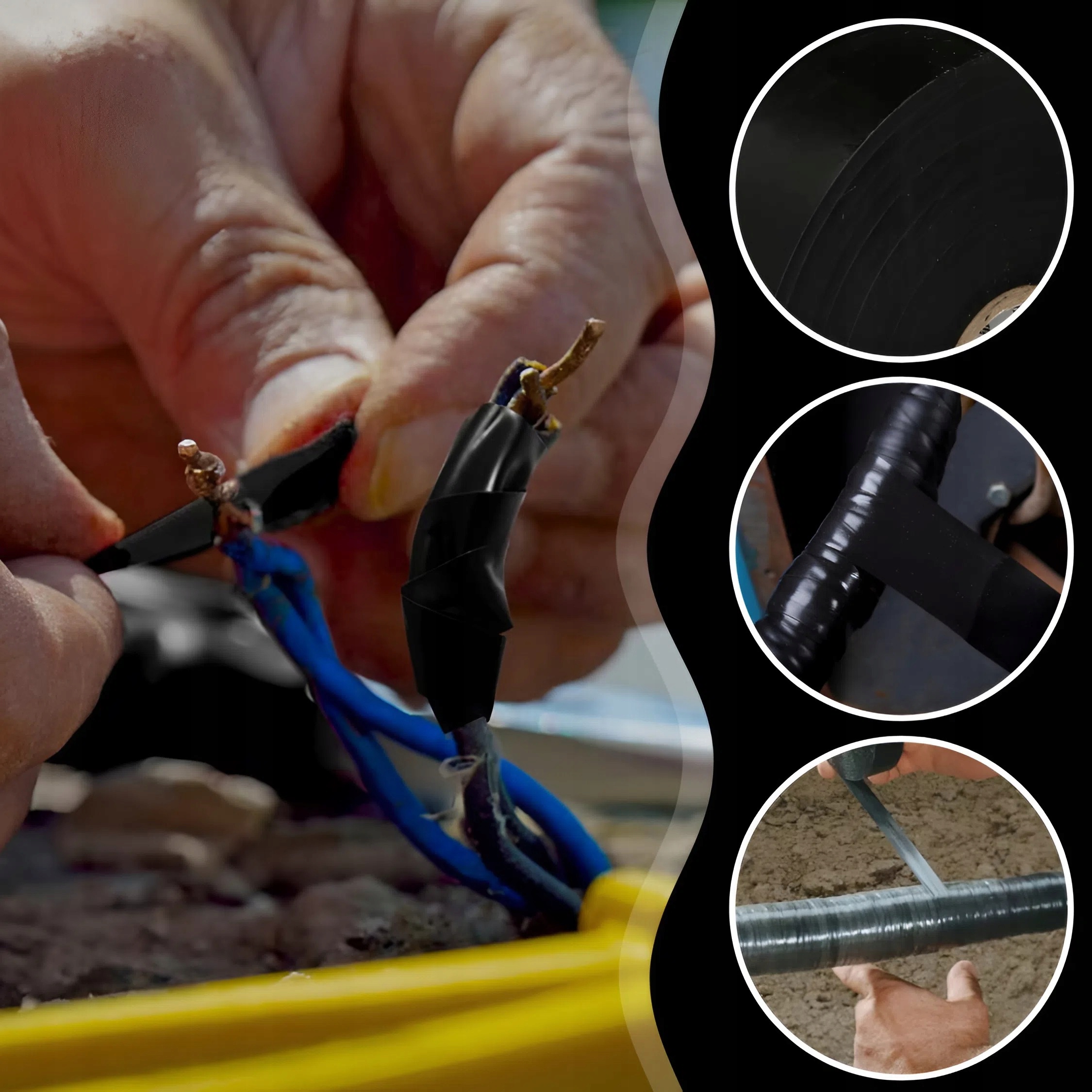 - Універсальне використання, ідеально підходить для ізоляції електричних кабелів, кріплення з'єднань, монтажних або ремонтних робіт.