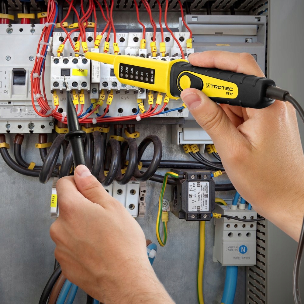 - Точна техніка вимірювання та відмінне співвідношення ціни -це означає, що цей біполярний детектор напруги є професійним партнером на практиці. BE17 дозволяє вам виміряти змінну напругу (змінного струму) або постійного струму (постійного струму) та їх полярності, а також має функцію управління FI/RCD або для запуску диференціального захисту