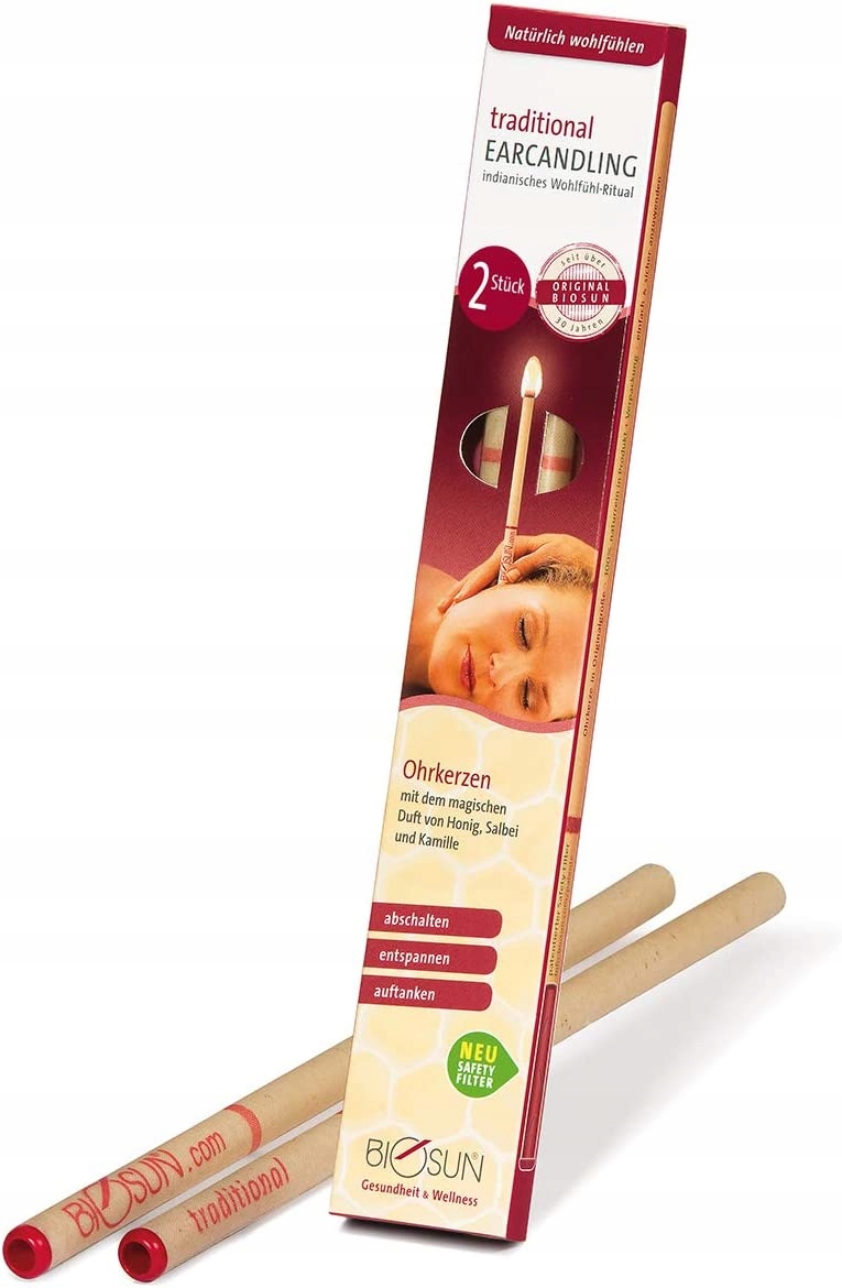 - Свічки-вушанки BIOSUN в наборі з 2 штук (1 пара) з ароматом меду , шавлія та ромашка для легкого та безпечного використання в парі для регенерації та глибокої релаксації