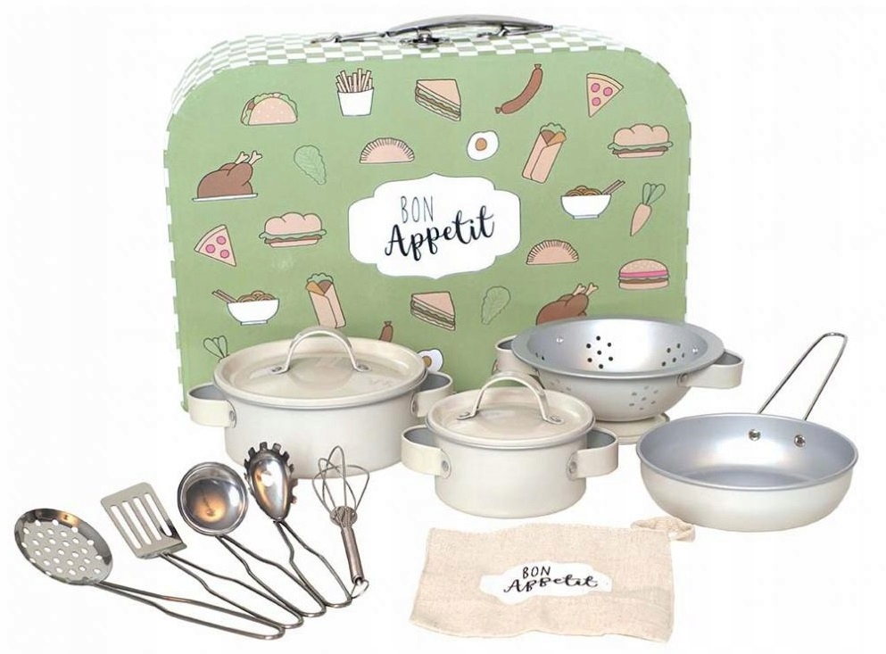Чарівний набір посуду та кухонного приладдя, що містить усе необхідне, щоб стати шеф-кухарем, упакований у стильну валізу. У цьому чудовому наборі ваша дитина відчує себе справжнім кулінаром. Це також навчить вашу дитину відповідальності та розвине уяву.