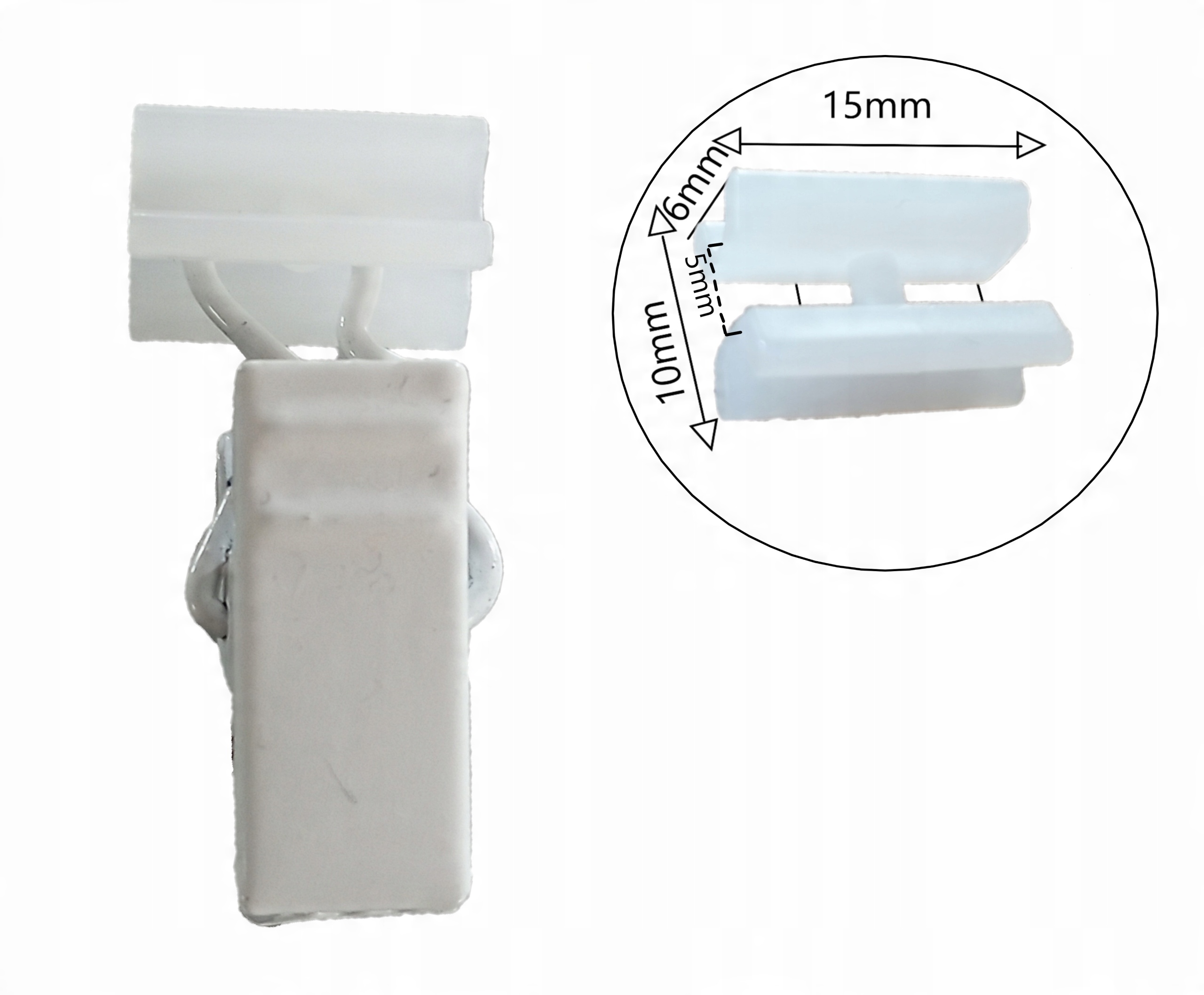 Металеві кліпси з полозком для алюмінієвих профілів для кріплення штор.