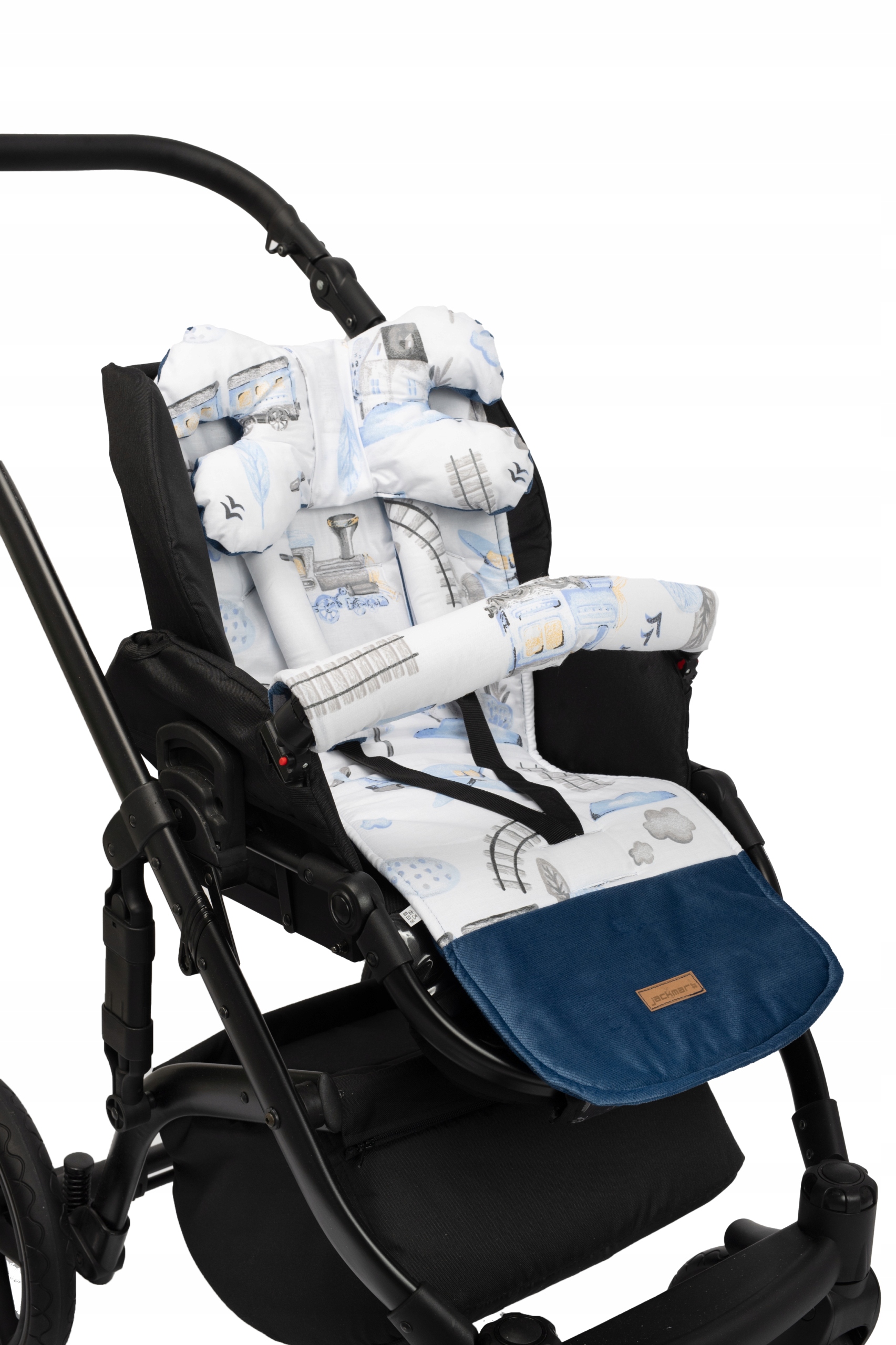 Двостороння вставка для коляски зі 100% бавовни в різних візерунках і кольорах, з іншого боку в поєднанні з оксамитом VELVET OR MINKI, альтернатива для холодних днів. Він наповнений м'якою підкладкою всередині і може використовуватися з обох сторін.
