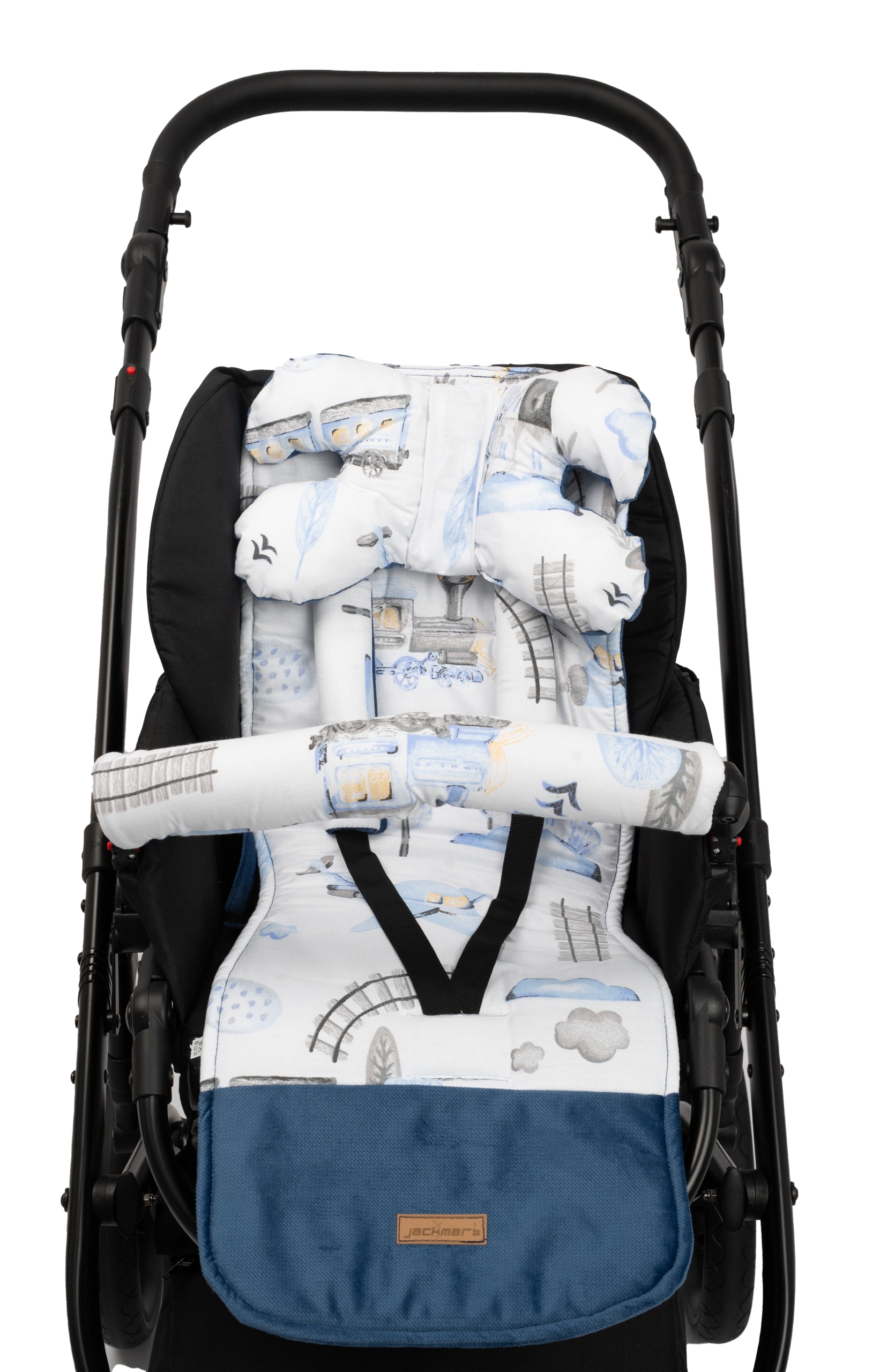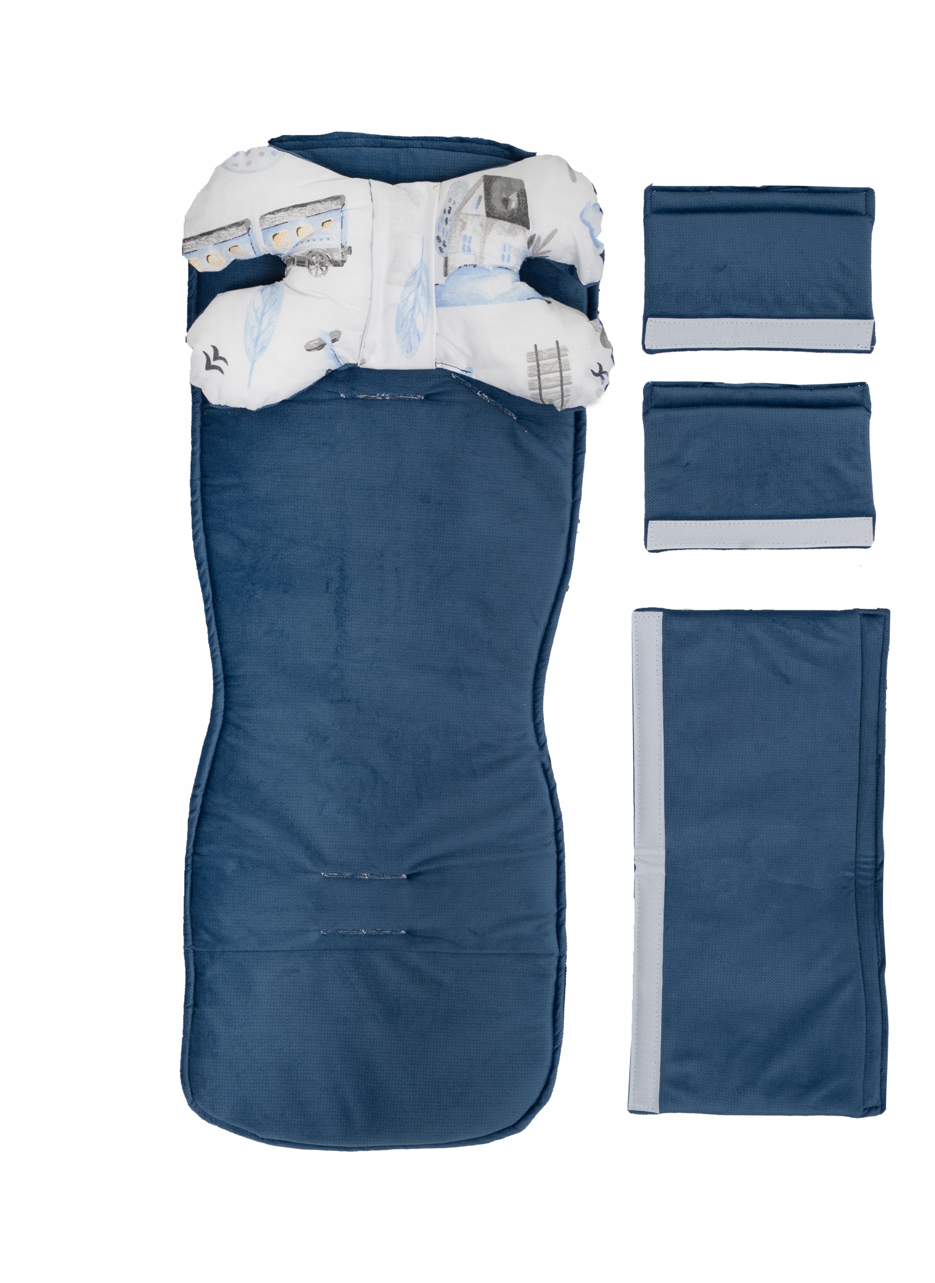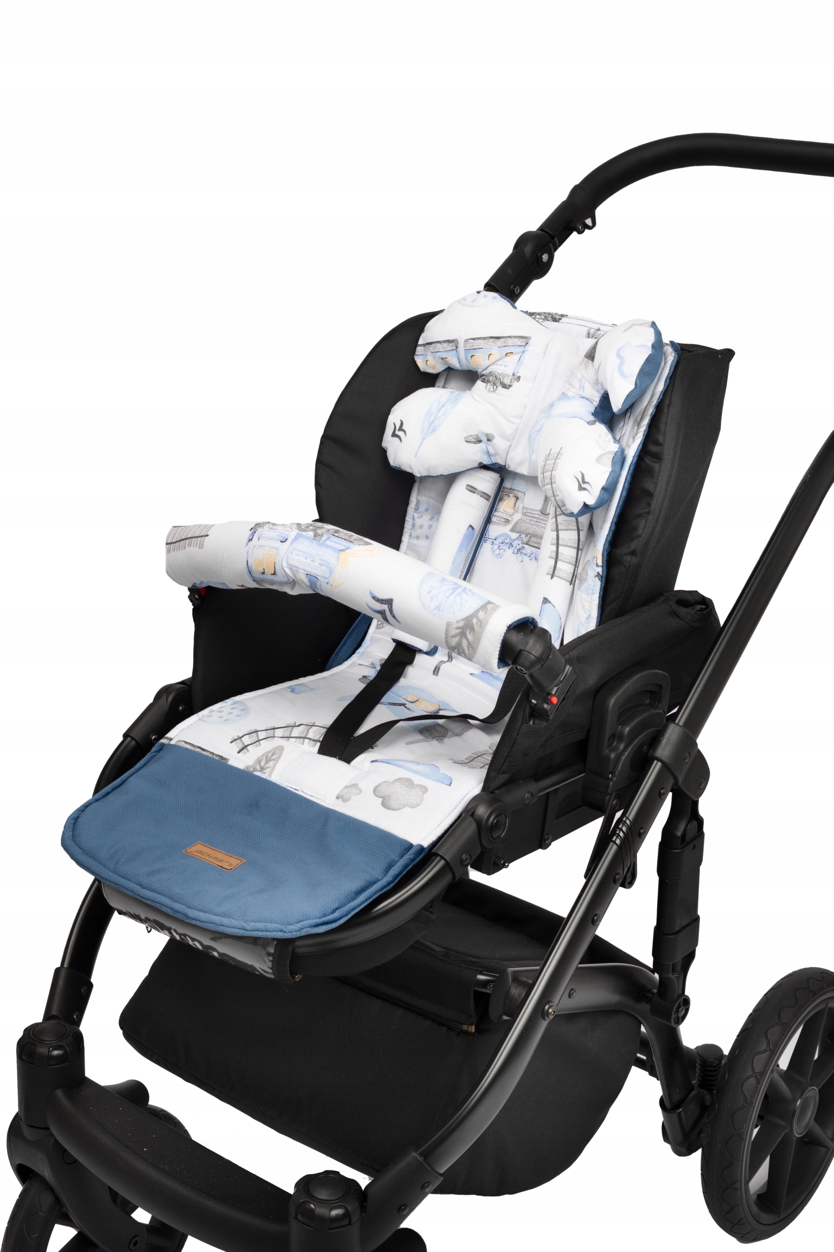 вставка з подвійною коляскою, виготовленою з 100% бавовни в різних конструкціях та кольорах, з іншого боку в поєднанні з оксамитовим оксамитом або обличчям альтернативи в прохолодніші дні. Всередині, наповнений м'яким теплішим, ви можете використовувати його з обох боків. Вставки є універсальними на багатьох коробках, доступних на ринку. Кожна вставка має ремінці вгорі завдяки якому ми можемо прикріпити його до рамки візки, щоб уникнути руху по сидінню. Силіконова кулька