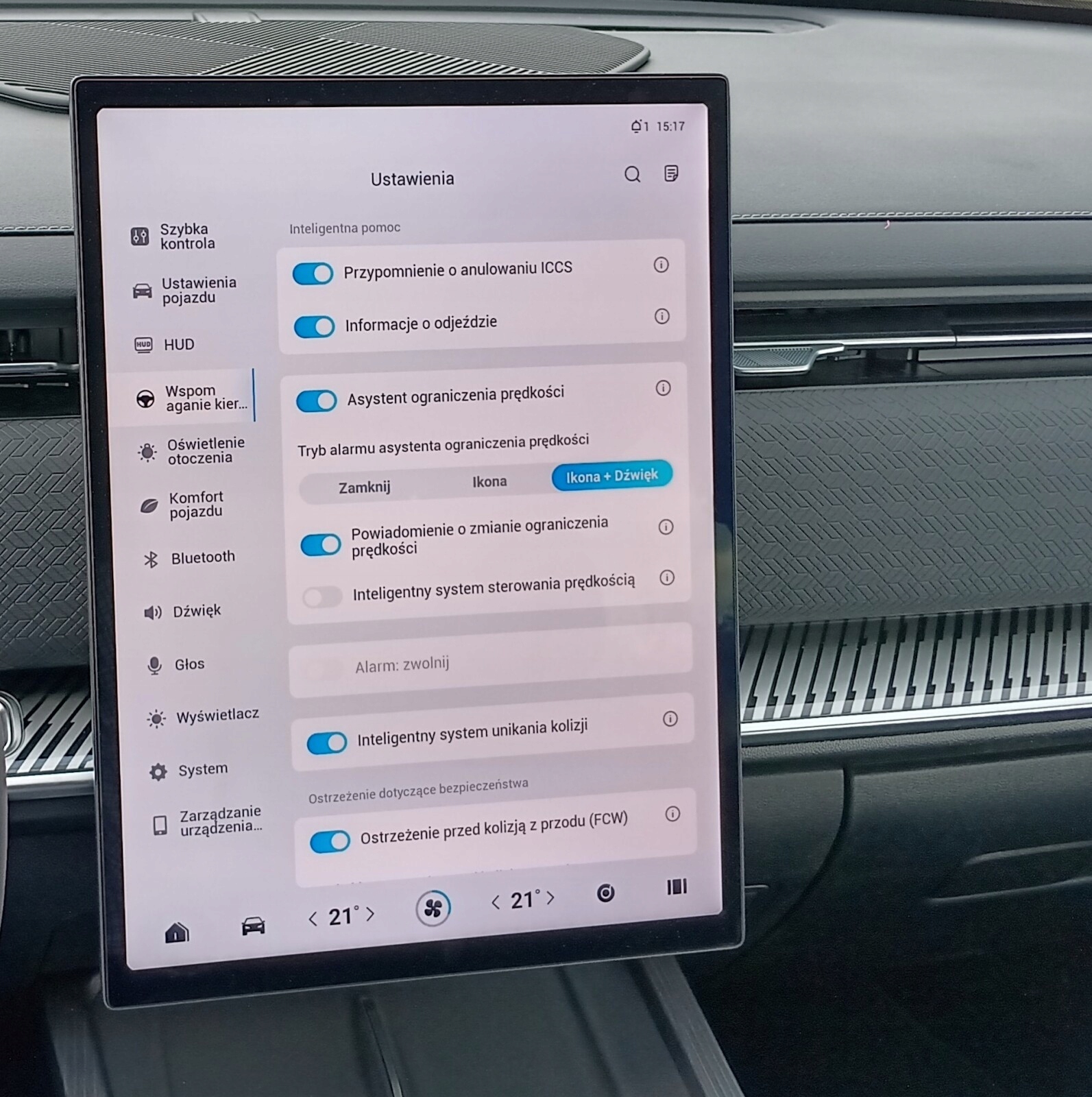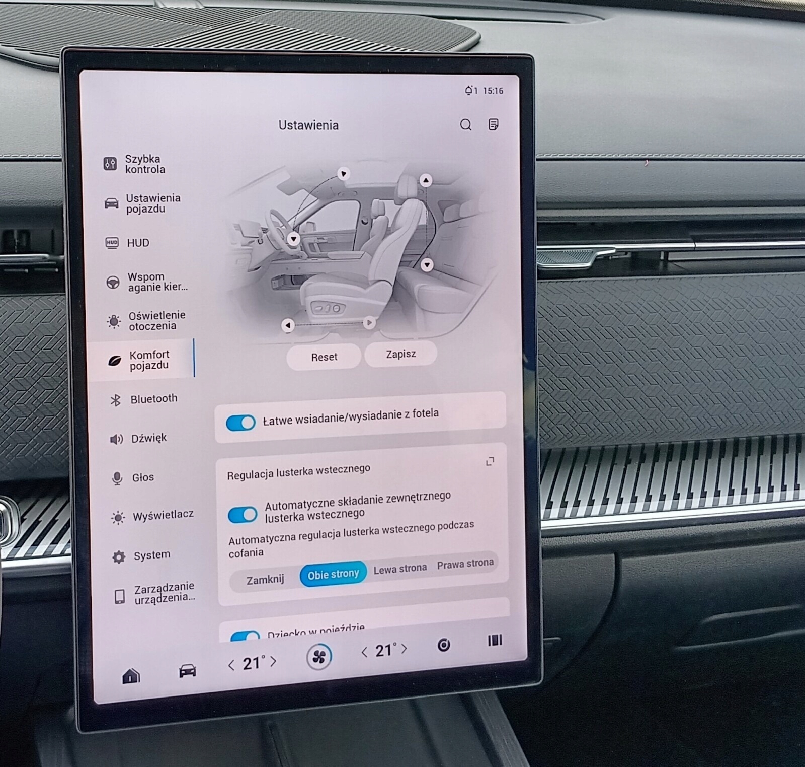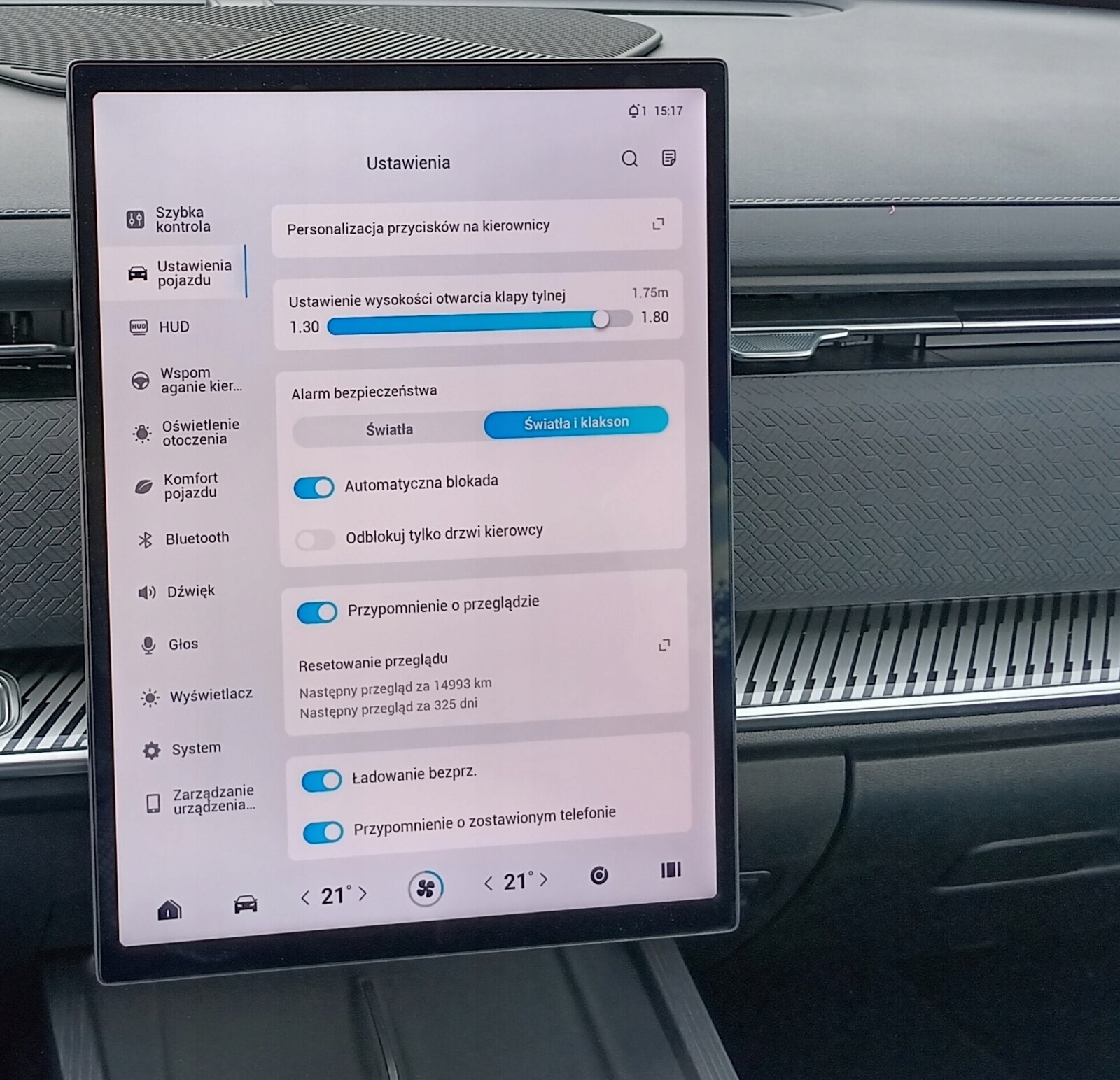 Центральний сенсорний екран 14,8" дозволяє керувати двозонним автоматичним клімат-контролем, аудіосистемою та налаштуваннями автомобіля.