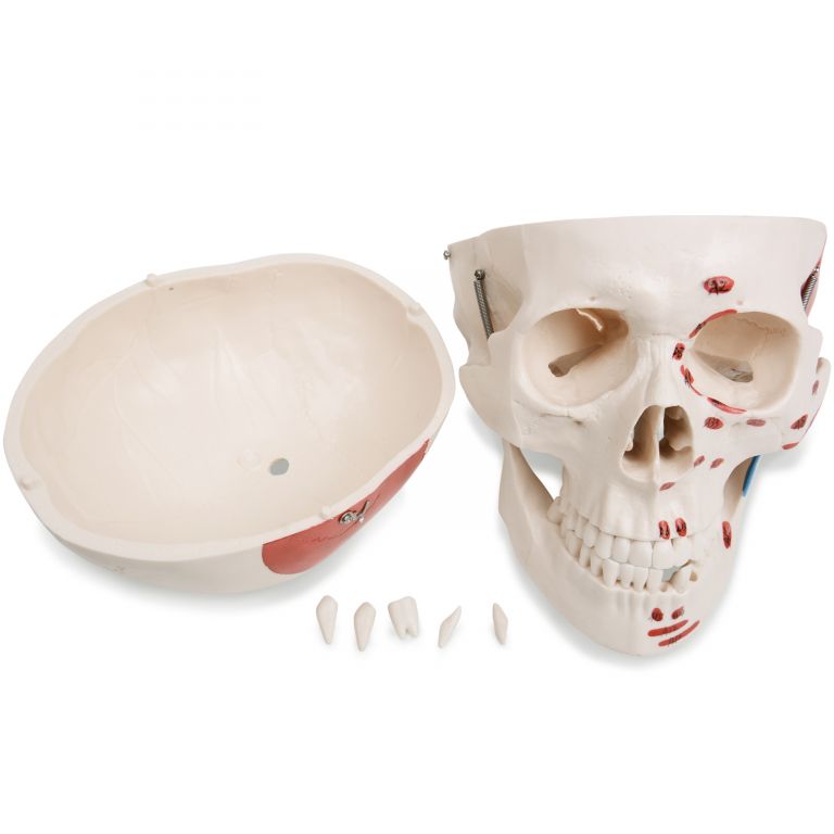 Анатомічний скелет складається приблизно з 200 реалістичних кісток із намальованими м’язами. Весь скелет має природний розмір 181,5 см. На нижній щелепі можна відновити жувальний рух, можна видалити три зуби. Руки та ноги цього скелета також знімні, а такі важливі суглоби, як стегна, плечі та зап’ястя, є рухомими. Ця модель скелета в натуральну величину має не тільки рухомі частини, але й цікаві деталі. Представлено хід хребетної артерії, бічні грижі поперекового диска та будову спинного мозку з нервовими корінцями. Череп можна відкрити, щоб виявити його внутрішню складність. Якщо ви хочете купити анатомічний скелет, купуйте його зараз. Це чудове доповнення до класичних підручників, які перенесуть вас від теорії до практики.