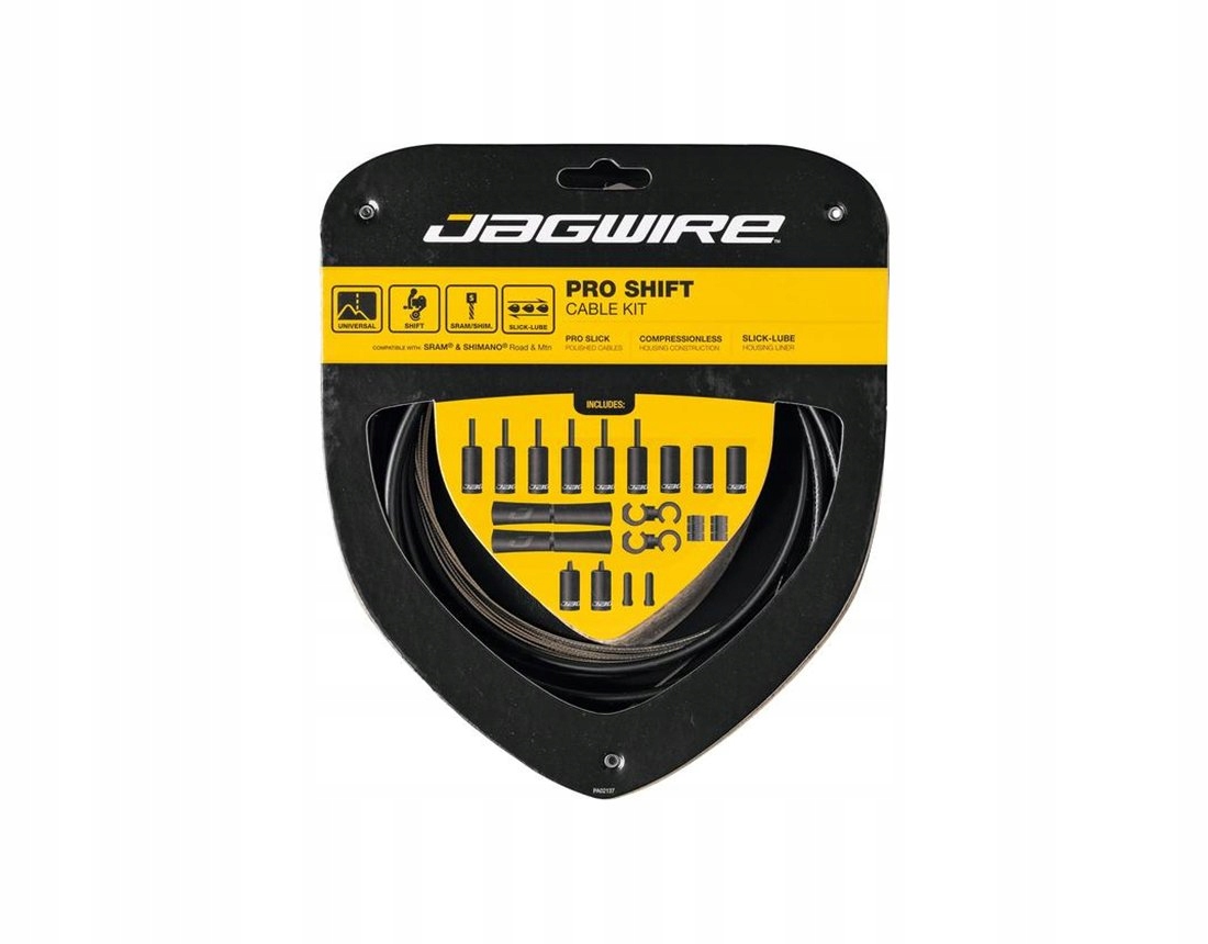 2-ступінчастий набір передач Jagwire Pro Shift переконує незвичайний плюс з точки зору продуктивності та зовнішності. Відшліфовані вставки про рівня та гладка-бла надзвичайно знижуються тертям, збільшуючи при цьому точність та довговічність перемикання передач. Оскільки набір включає всі необхідні невеликі деталі, набори Pro Shift швидко та прості в встановленні.