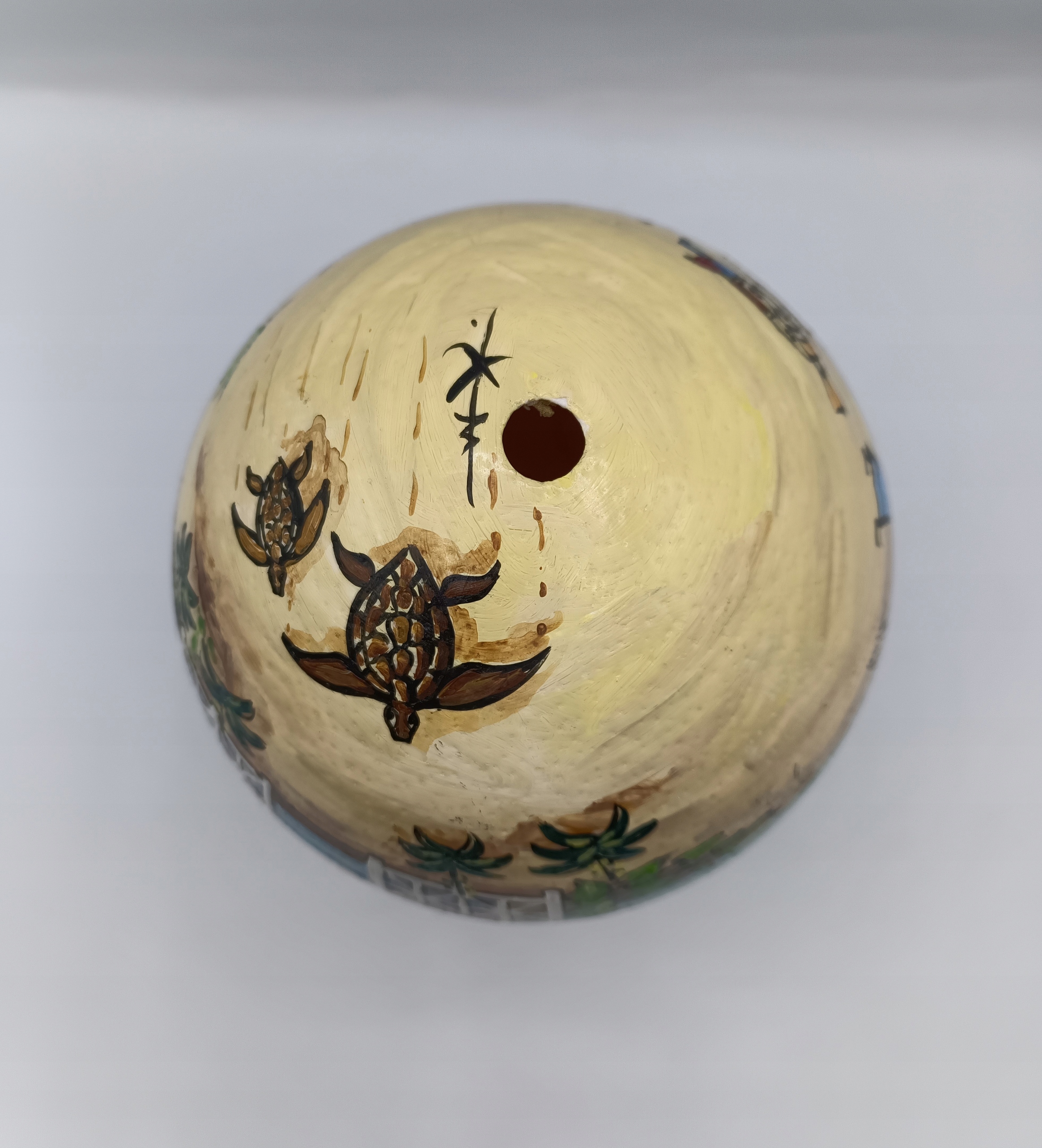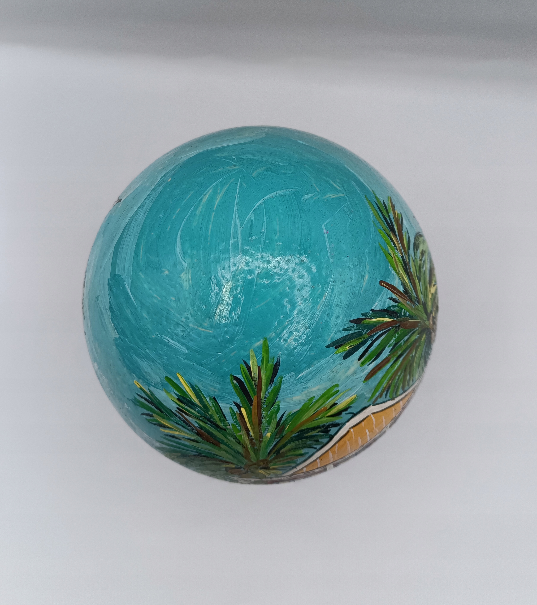Це справжнє страусине яйце, привезене з екзотичної відпустки, розписане вручну акриловою фарбою, захищене лаком і його можна мити водою. Це дуже гарна річ, може бути подарунок!!!