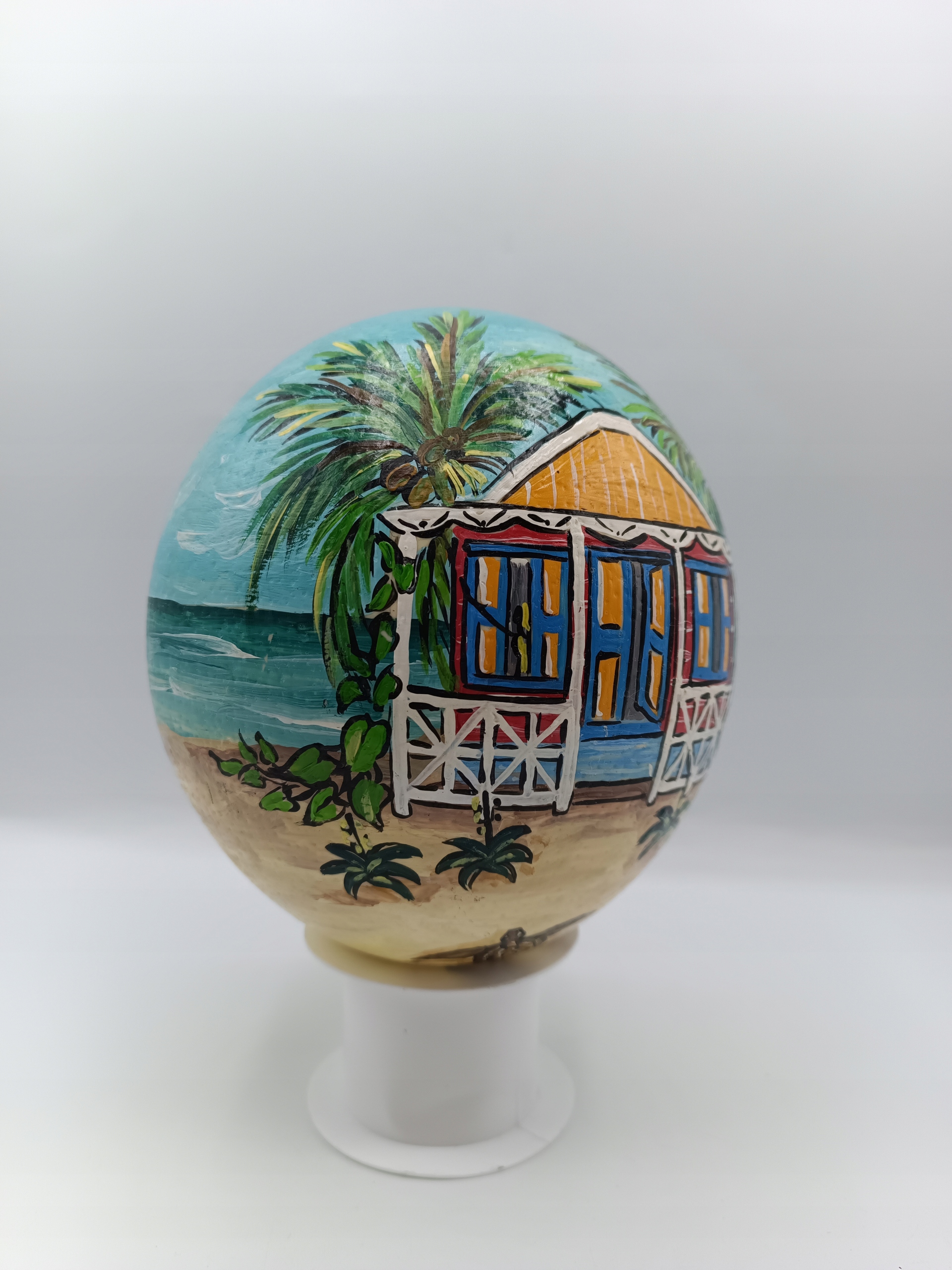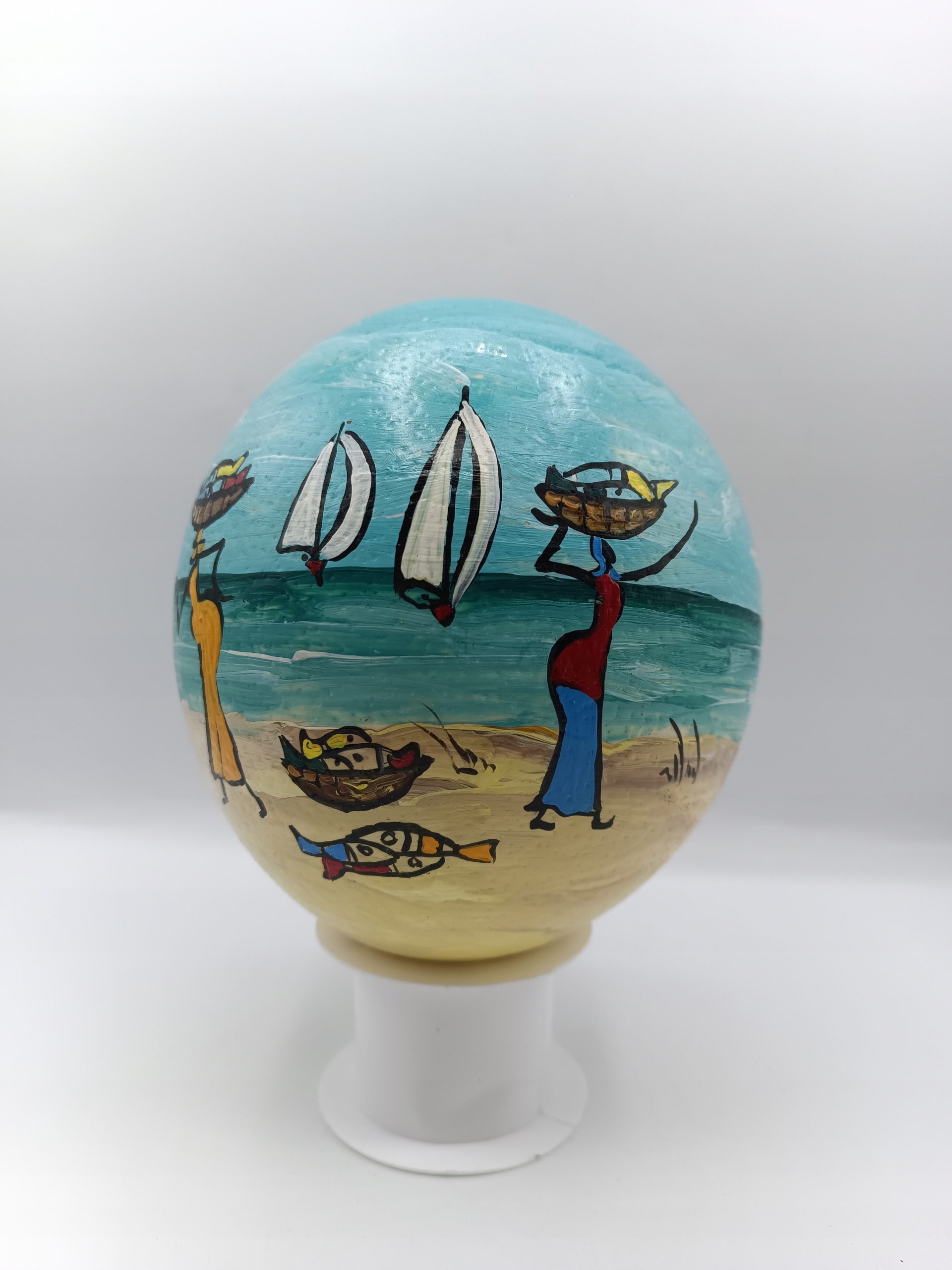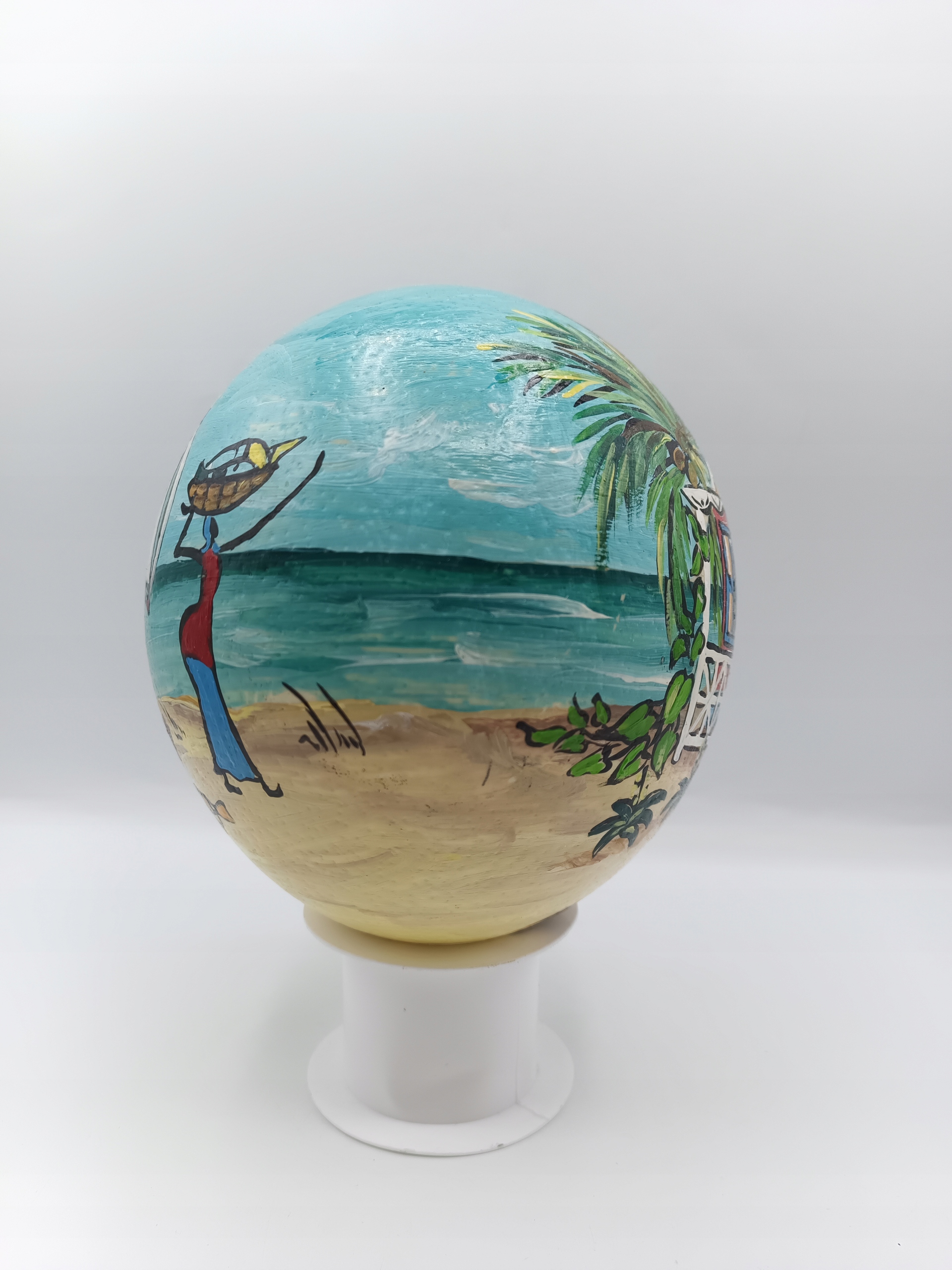 Страусине яйце, розмальоване як картина з екзотичної країни, прекрасний предмет колекціонування
