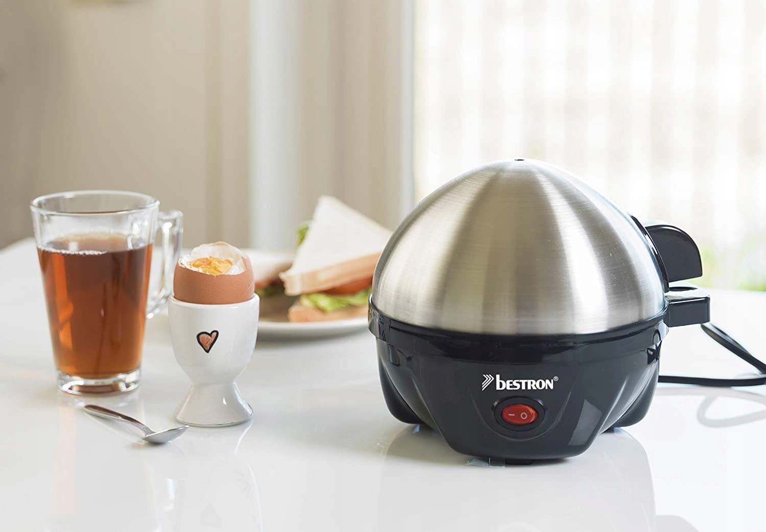 Яйцеварка BESTRON AEC700 дозволяє варити до 7 яєць одночасно. Звуковий сигнал сповіщає про закінчення приготування, тож вам не потрібно стежити за часом, а яйця варяться рівно стільки, скільки потрібно.