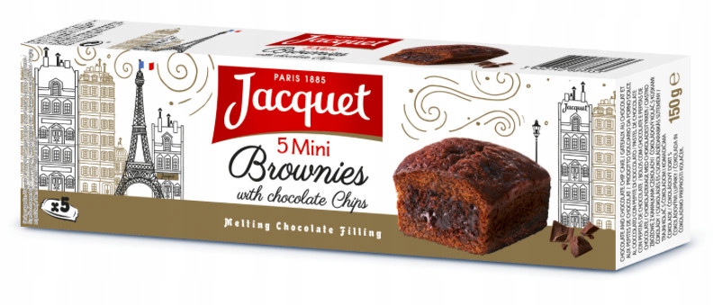 Волога, шалено смачне печиво з брауні з шматочками шоколаду плюс ранкова кава - це гарантія успішного початку дня. У мить ваше почуття смаку та запаху перенесе вас до клімату, французького кафе. Пакет містить 5 окремо упакованих тортів.