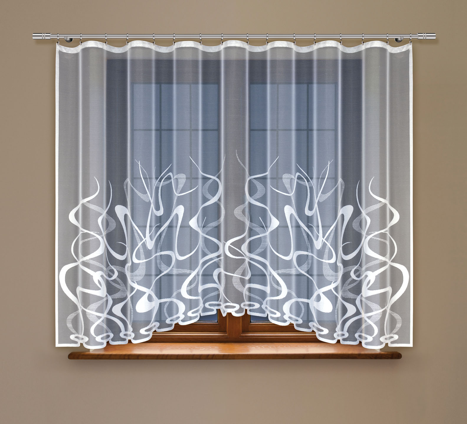 Штора з вирізом і делікатним, фантазійний візерунок стане елегантною пропозицією для кухні чи кімнати, а завдяки делікатній структурі та поглибленню не закриває сонячне світло.