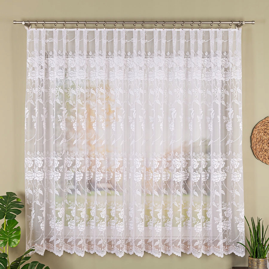 Додайте легкості та елегантності своєму інтер’єру за допомогою цієї класичної жакардової штори з чітким квітковим малюнком. Виготовлена з високоякісної пряжі, штора поєднує в собі довговічність і естетичність, створюючи затишну атмосферу на кухні, в їдальні чи іншій кімнаті, де вам важливе тонке внутрішнє освітлення. Ніжний жакардовий квітковий мотив красиво виглядає як у сучасних, так і в традиційних композиціях. Завдяки нейтральному білому кольору штора ідеально поєднується з будь-яким кольором стін і аксесуарів. Прозора структура матеріалу пропускає денне світло, захищаючи при цьому від надмірної видимості ззовні. Штора призначена для підвішування жабо, що дуже полегшує її встановлення та дозволяє швидко освіжити зовнішній вигляд інтер'єру без особливих зусиль.