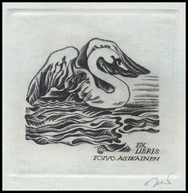 Jakubowski 1985 Exlibris C2 Ptak Łabędż 598
