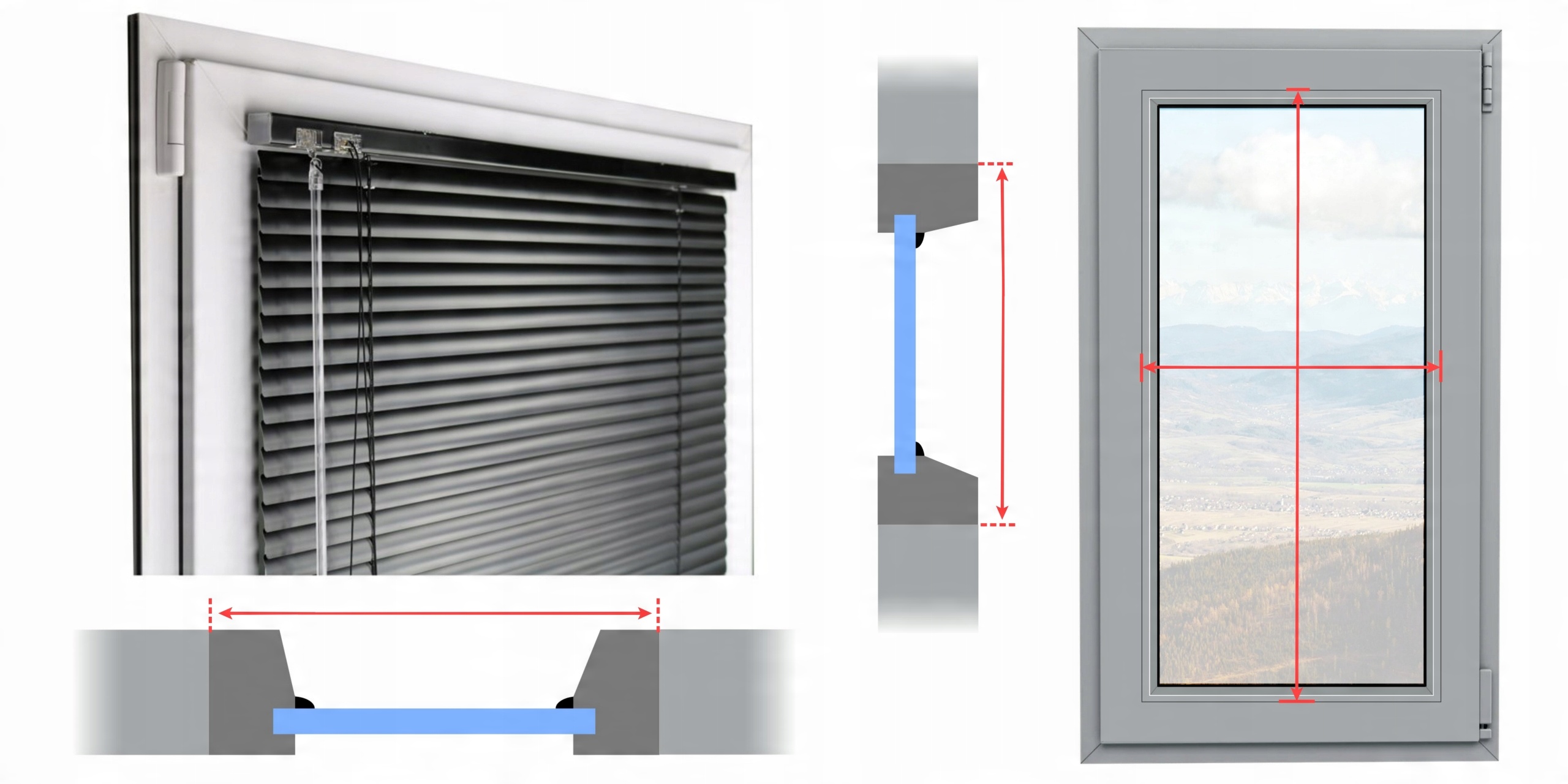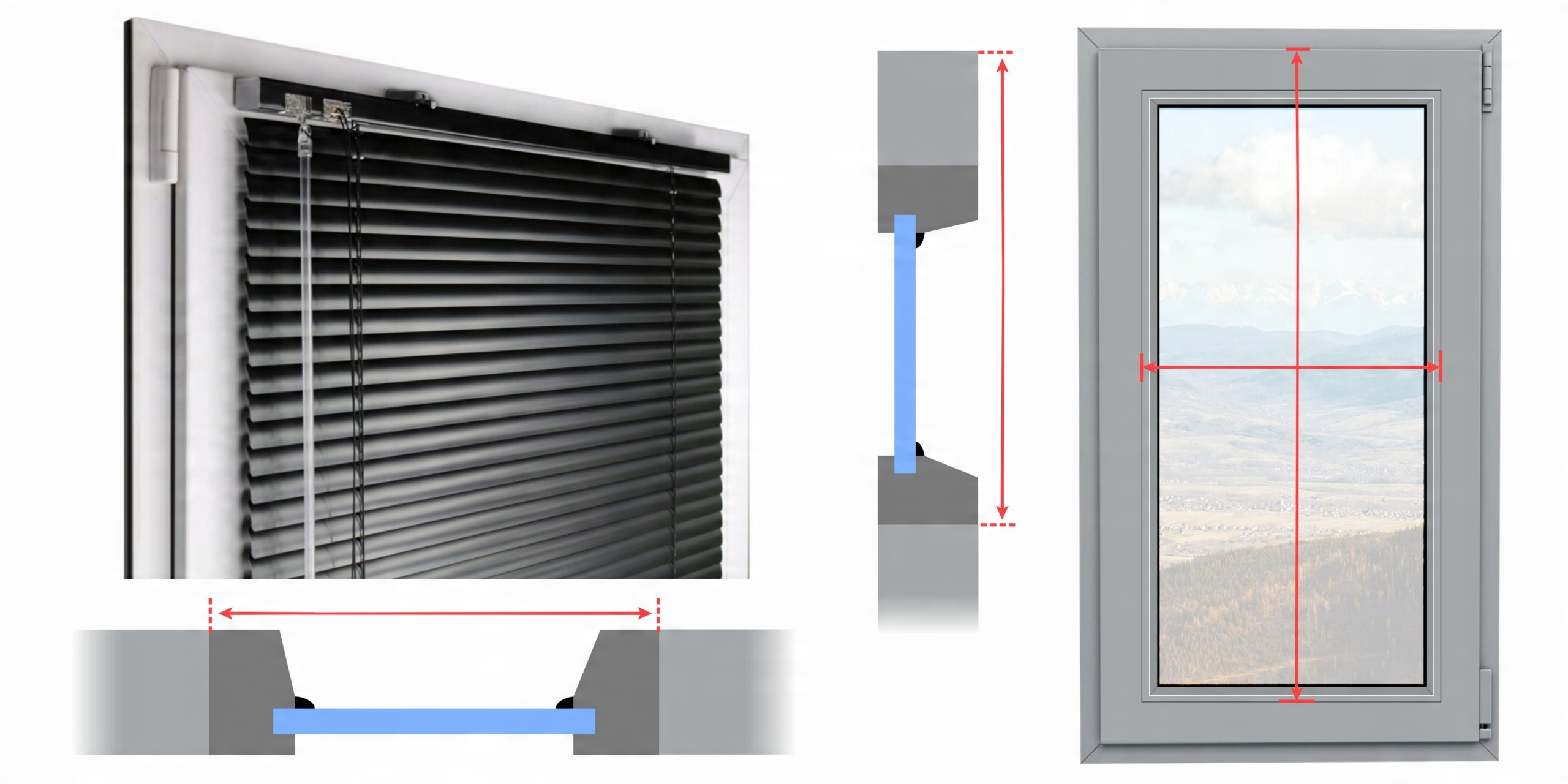 - Якщо ви бажаєте, щоб жалюзі було встановлено нижче (на штапик, оскільки у вас плоский), зменшіть свій розмір на відповідну висоту, пам’ятаючи, що ручка має бути прикріплена до плоскої поверхні.