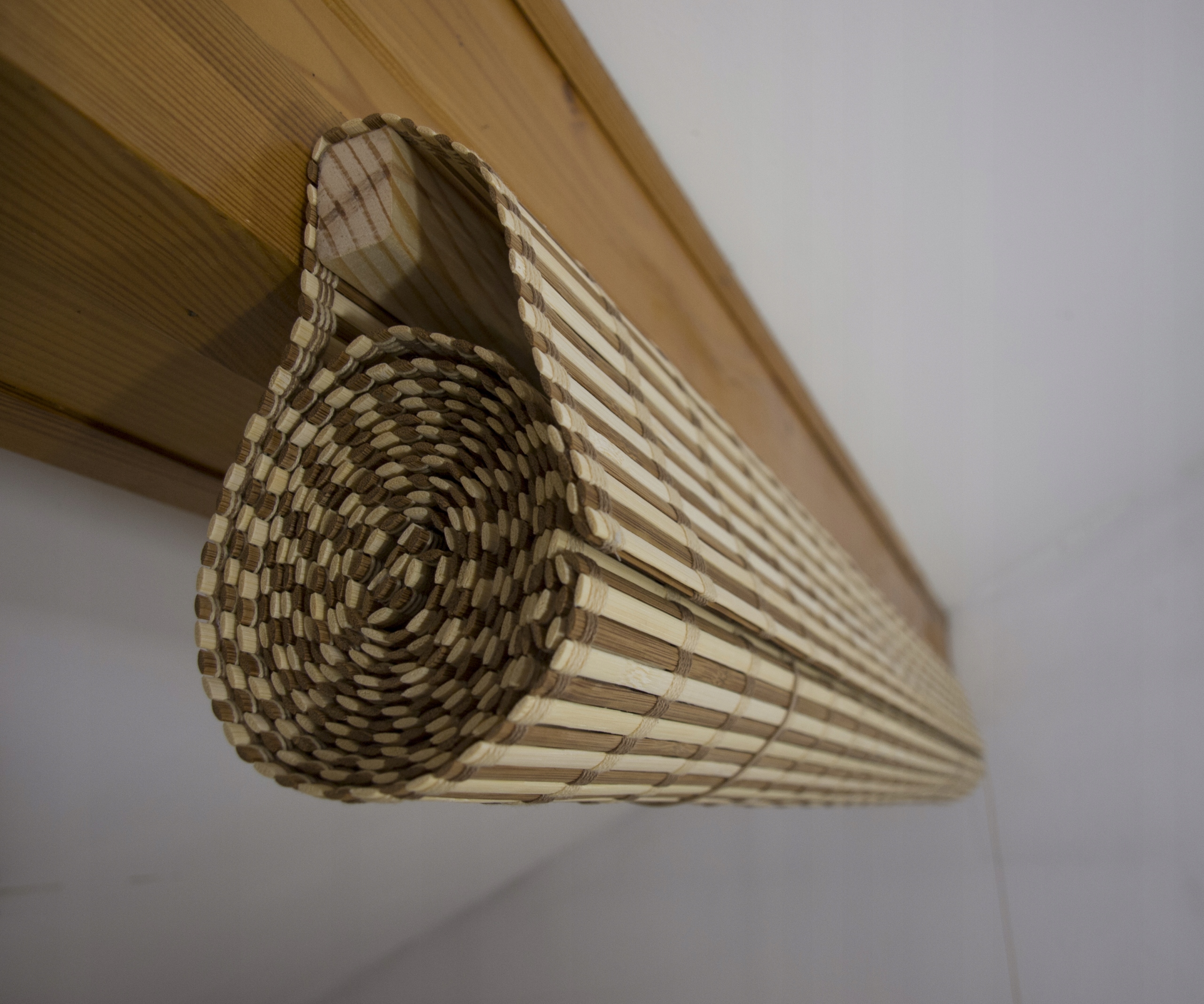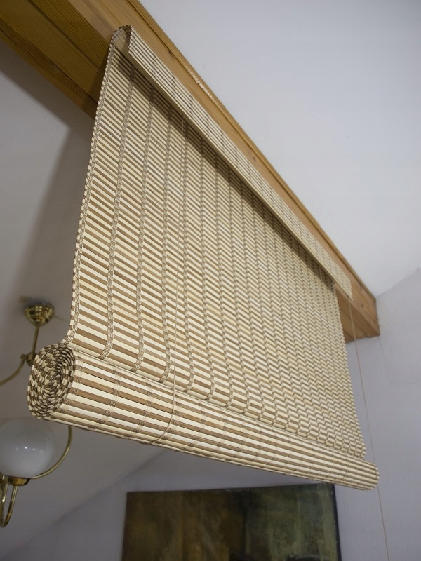 Бамбукові рулонні штори - цікава альтернатива дерев'яним жалюзі. Це також елегантний і природний спосіб закрити вікно. Монтаж може бути безпосередньо на штапик або на стелю/стіну за допомогою металевих кронштейнів (кутників). Через відносно великі розміри кронштейнів жалюзі краще кріпити безпосередньо до стіни над вікном. Килимок кріпиться до дерев'яної смуги і має самофіксуючий механізм, що дозволяє зупинити його на будь-якій висоті вікна. Механізм рулонної штори покритий воланом, що додає елегантності. У згорнутому стані рулонна штора має висоту приблизно 15 см.