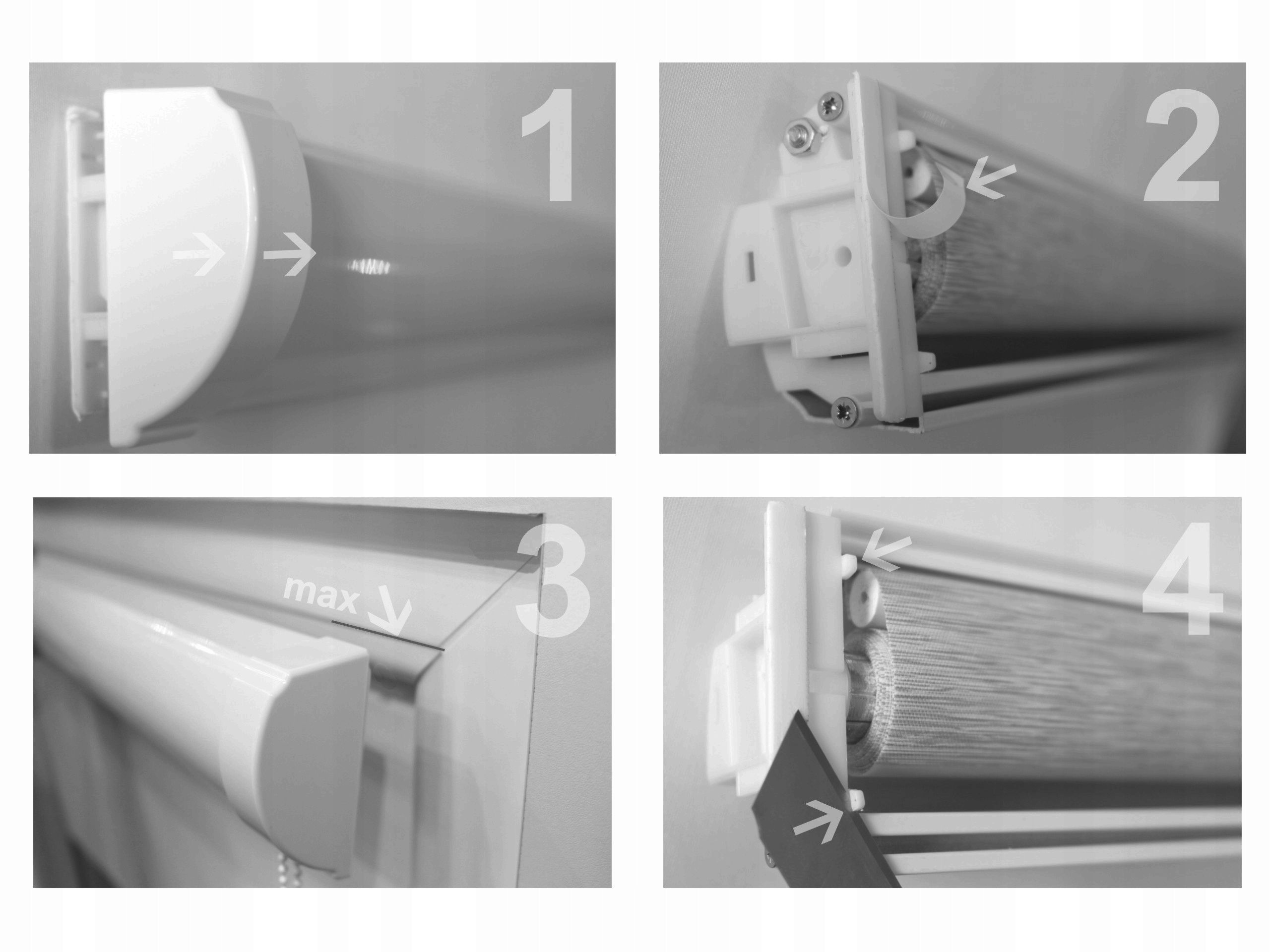 Після розпакування рулонна штора готова до монтажу. Будь ласка, зніміть бічні кришки з корпусу ролет (фото 1).