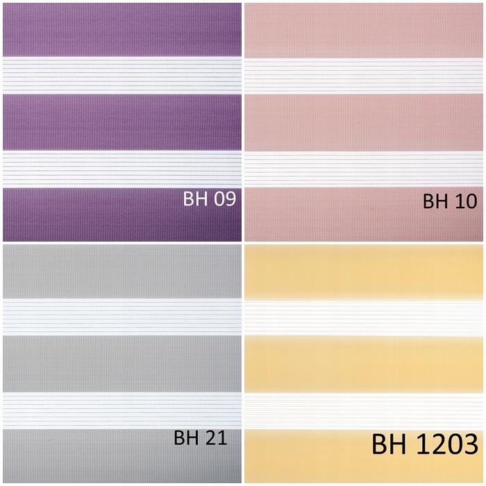 Тканини для рулонних штор виготовлені зі 100% поліестеру, за винятком матеріалів BH 08, BH 1401, BH1402, BH1405, BH1406, які мають додавання льону.