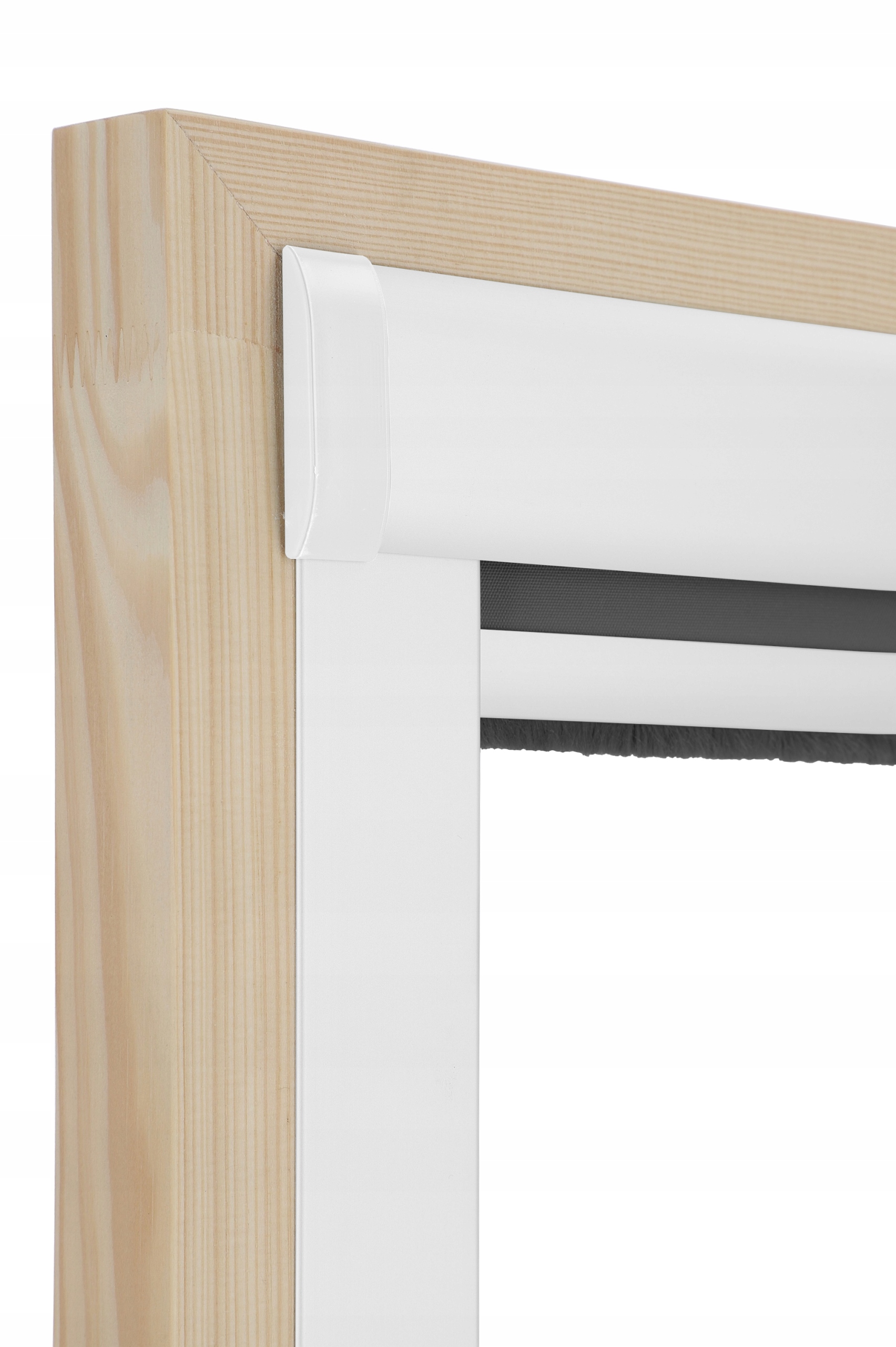 Покрівельні рулонні штори з тканини Thermo (Silver) Blackout, розміщені в касеті ALU. з направляючими, виготовленими на замовлення.