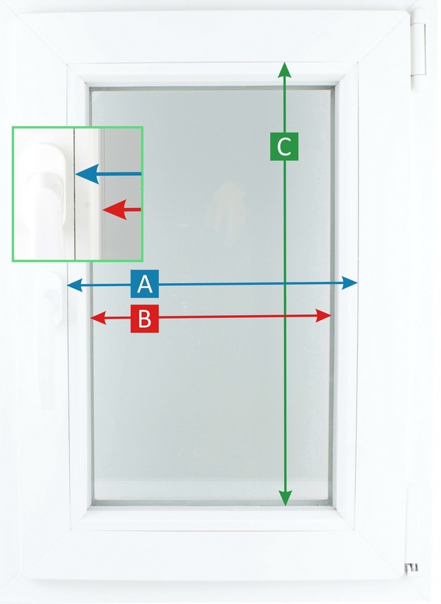 A - ширина скла з штапиками (це буде ширина касети),