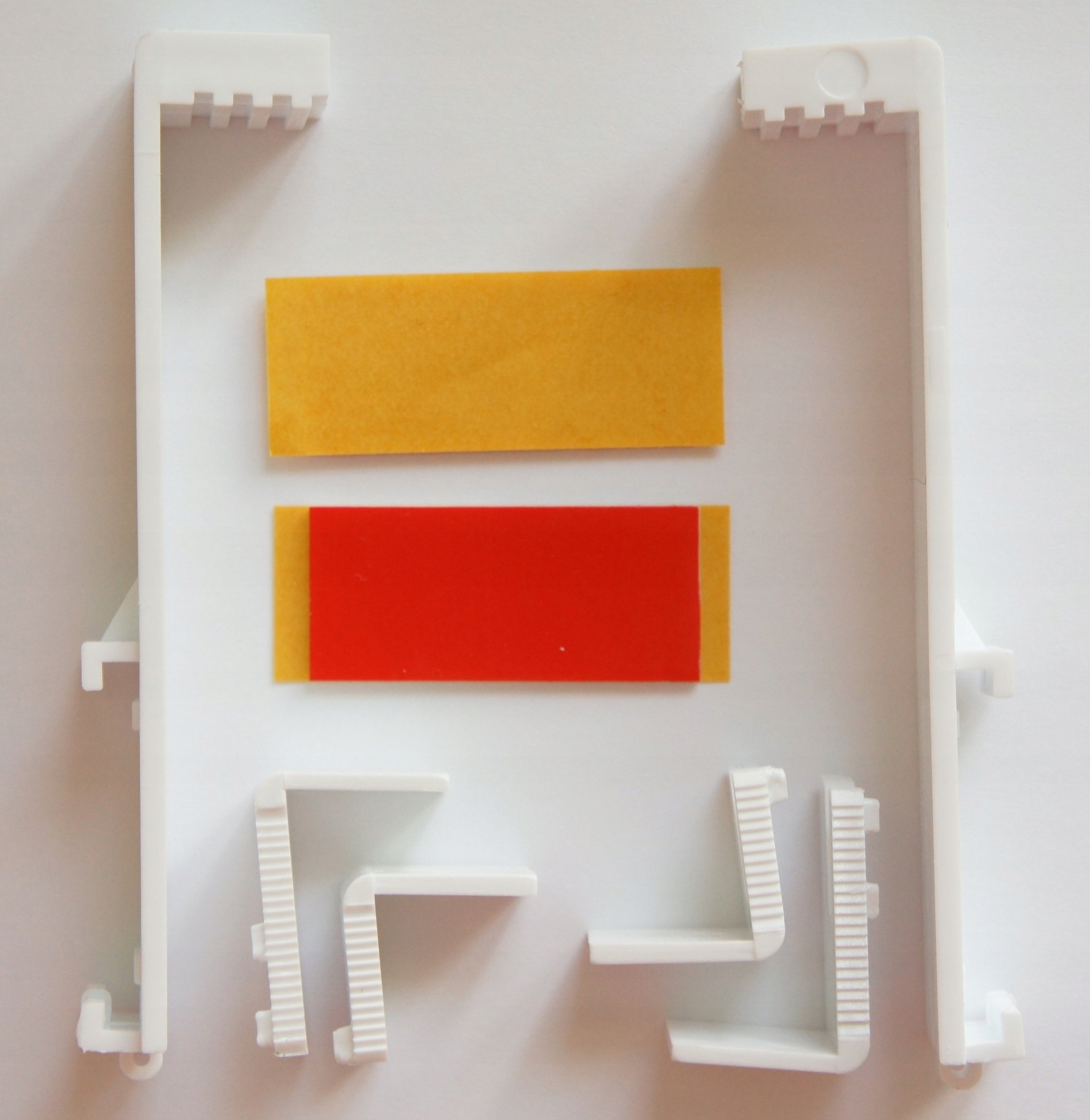 У набір входять самоклеючі кріплення, завдяки яким вся конструкція буде стійкою та довговічною. Виріб виготовлений із пластику. Він стійкий до шкідливого впливу інтенсивного сонячного світла та змінних температур.