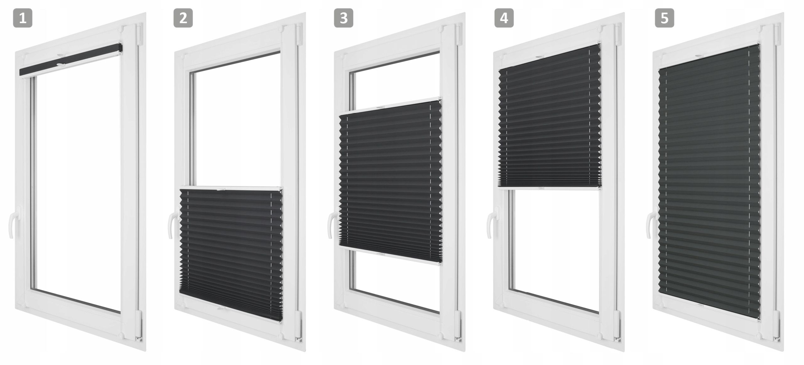 Плісе рухається у світлі скла, прикріплене гвинтами до верхнього та нижнього штапиків скла.