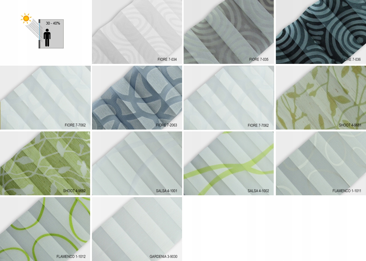 Плісе — це віконне покриття, яке трохи відрізняється від традиційного образу рулонних штор. Керування вгору-вниз дозволяє охоплювати будь-яку частину вікна. Широкий асортимент матеріалів з різними властивостями дозволяє ідеально підібрати їх відповідно до бажаної функції, структури та кольору. Матеріали декоративні, світловідбиваючі, 100% затемняючі і навіть теплоізоляційні. Додатковою перевагою штор плісе є можливість прання деяких матеріалів. Також ми можемо виготовити плісе в якості кришки для дахових вікон і незвичайних форм - арки, скоси або трапеції.