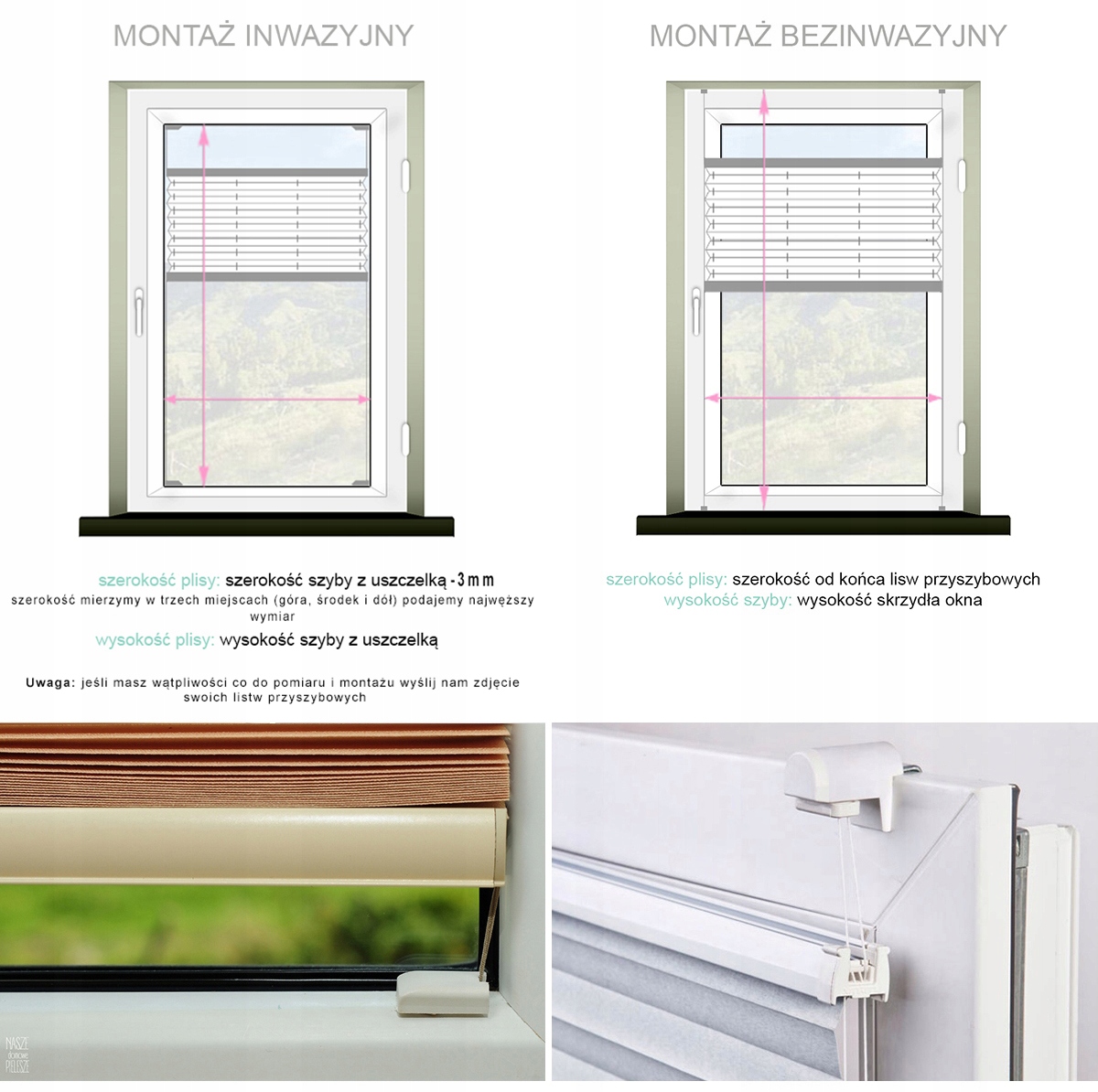 Встановлення плісе дуже швидке та просте. Інвазивний монтаж (зі свердлінням) передбачає пригвинчування фіксаторів до штапиків. Неінвазивний монтаж (без свердління) передбачає кріплення рулонної штори до віконної рами за допомогою гачків.