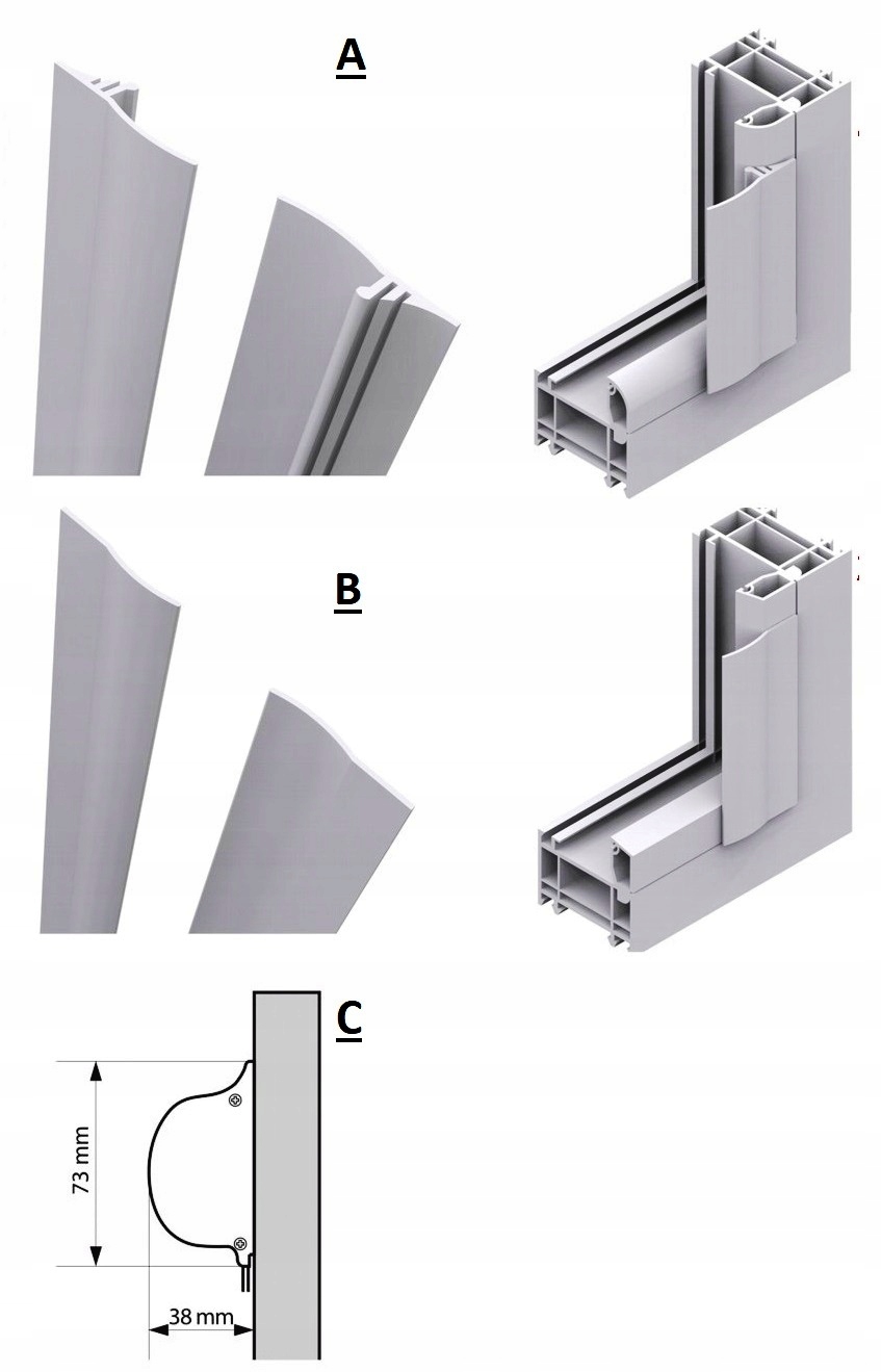 А-подібні напрямні-для вікон із закругленими штапиками, відповідним чином профільовані