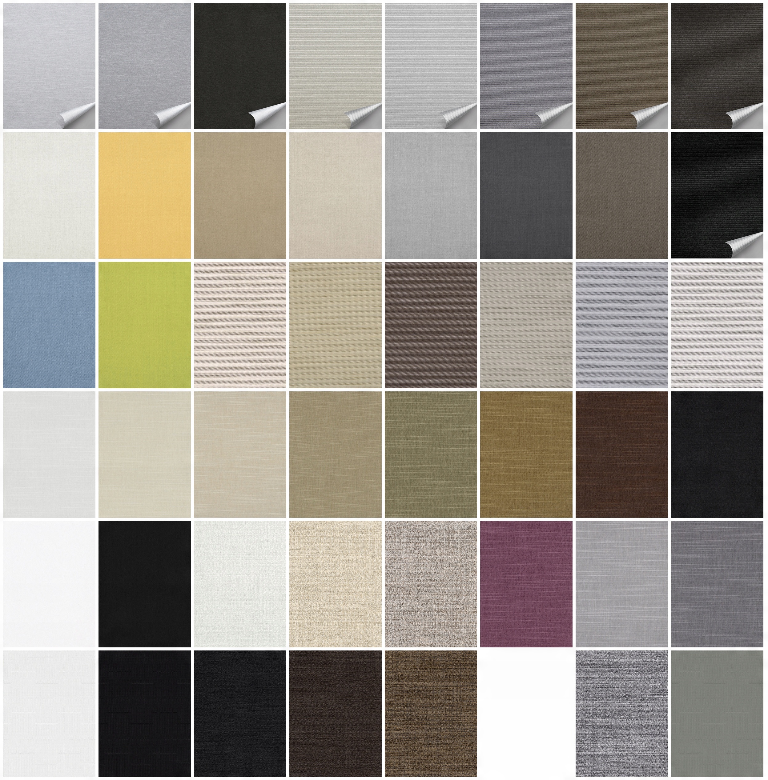 - D'LUX: базова колекція, що складається з 2 тканин білого та чорного кольорів. Склад: 100% поліестер, Вага: 210 г/м2