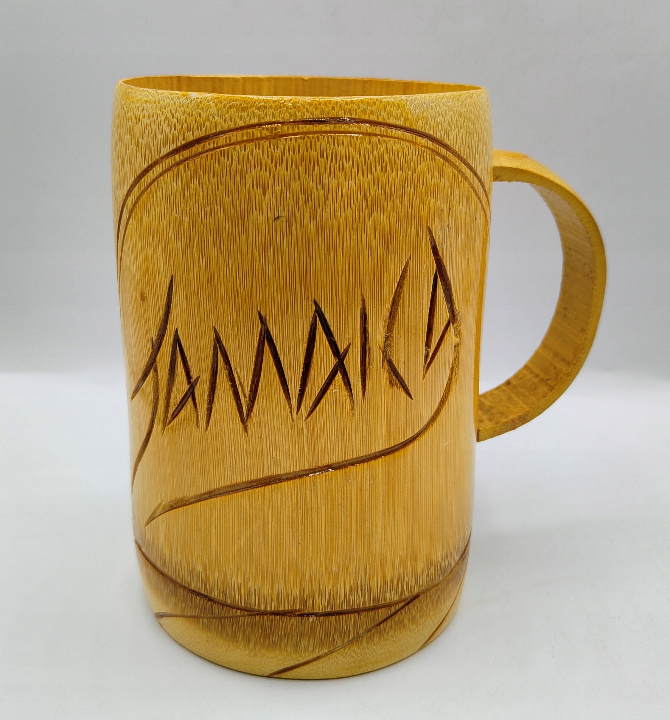 Колекційний кухоль, пивний кухоль ЯМАЙКА ручного різьблення дерев'яний/БАМБУКОВИЙ "Червона смуга" 700 мл.
