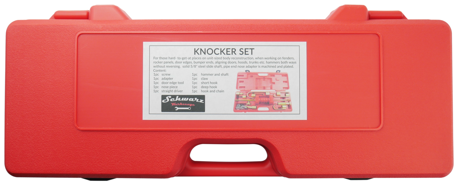 ☑️ Набір перфораторів відмінної якості (молоток інерційний) 5,4 кг з аксесуарами. Використовується для видалення дрібних вм'ятин з пошкоджених елементів кузова легкових автомобілів і транспортних засобів доставки. Все це упаковано в зручну пластикову валізу. Набір включає ряд аксесуарів таких як: гачки, ручки, наконечник з ланцюжком, наконечники для використання зі споттером.