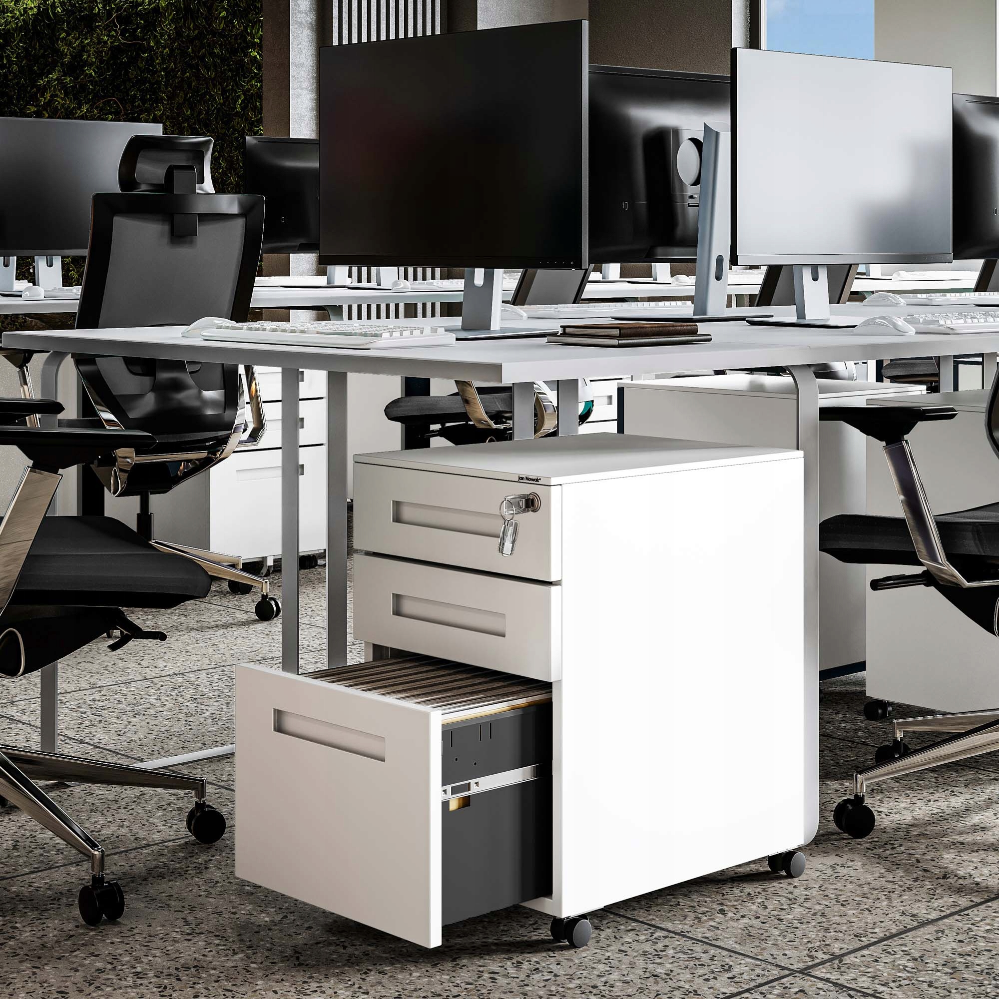 Металевий контейнер з мінімалістичним блоком та невеликими розмірами чудова навіть для офісів з обмеженою площею або для домашніх офісів.