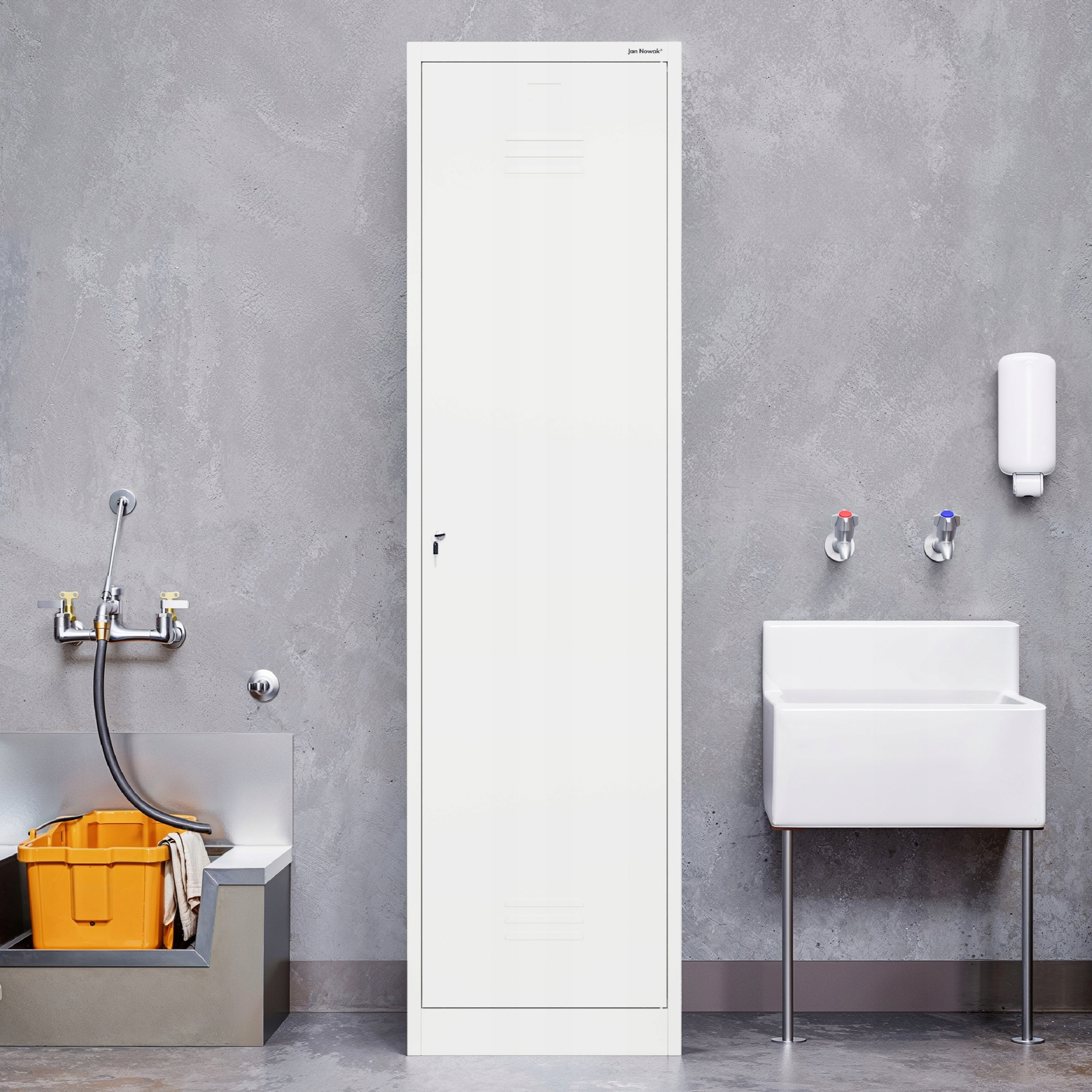 JAN NOWAK Металева гардеробна шафа, вузький стовп, для швабри AGNES: білий