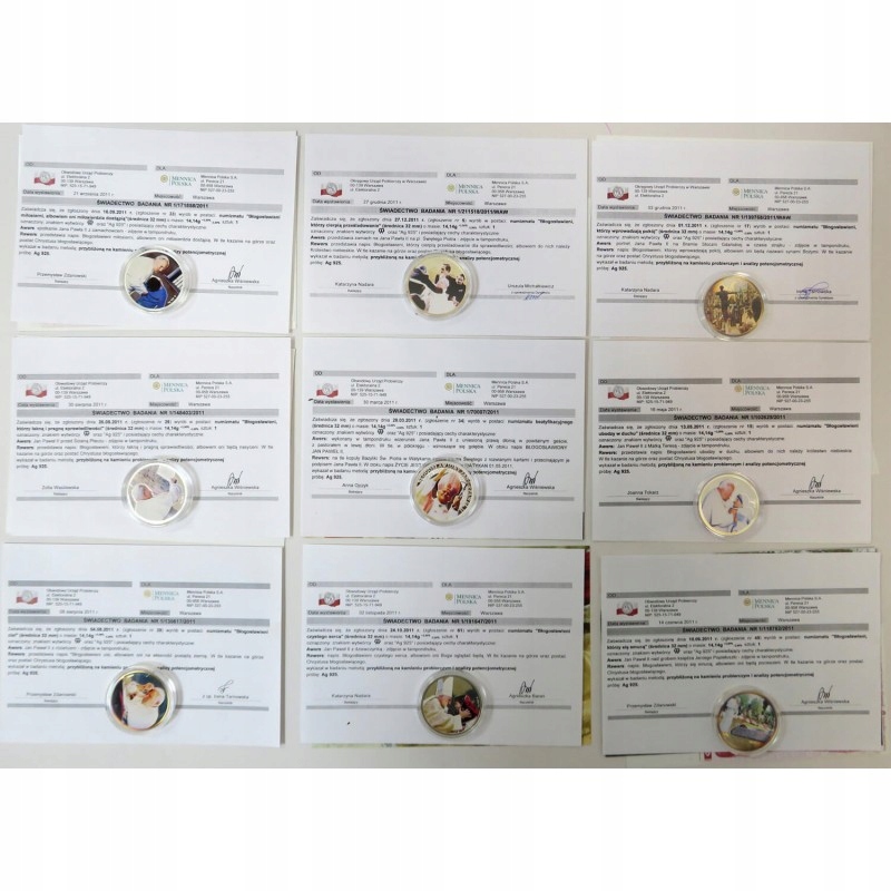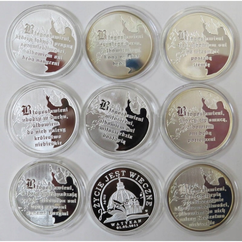 Jan Paweł II beatyfikacja zestaw 9 szt Srebro Ag925 + etui + certyfikaty