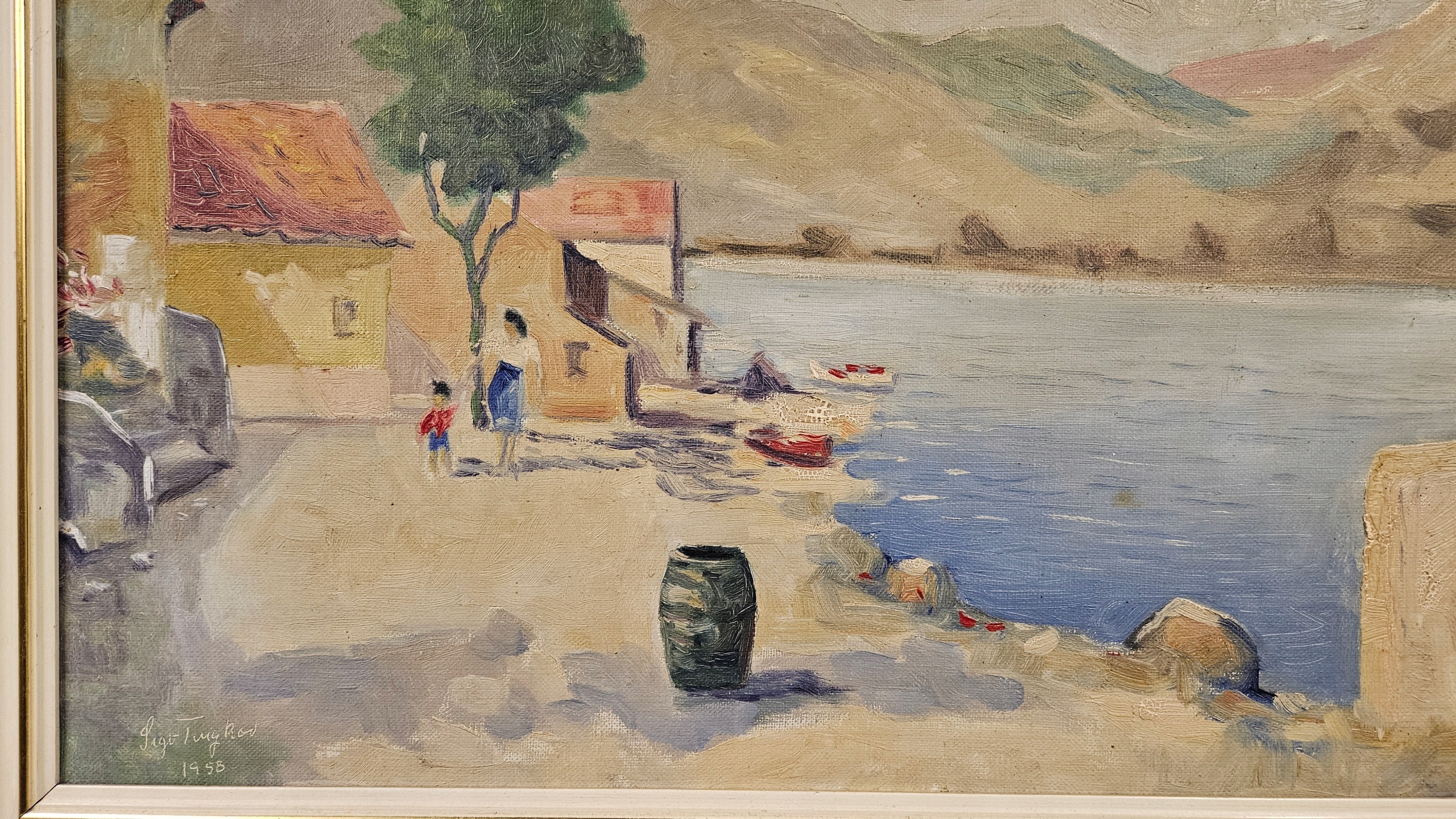 Опис: для продажу прекрасна картина цінного виконавця. Робота представляє жанрову сцену: мати з дитиною ходила на набережну в сонячний день.