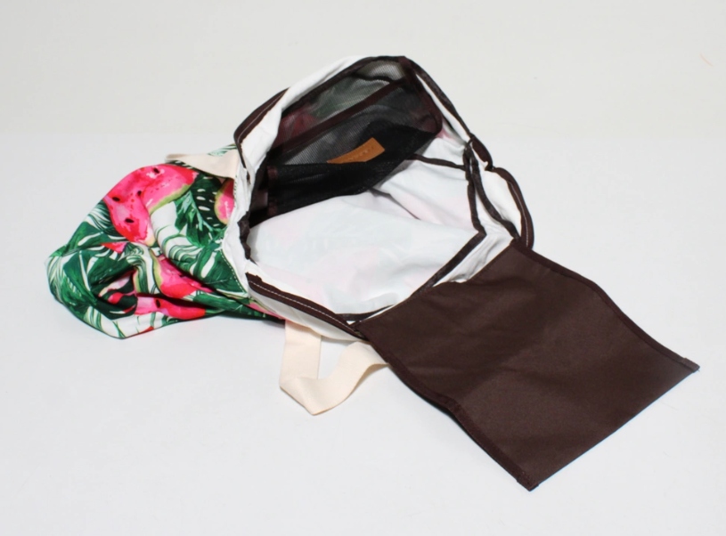 - Ця пляжна сумка має розміри 66 см x 22 см x 46 см. Пропонує багато місця для безпечного зберігання необхідних пляжних речей, таких як пляжні рушники, одяг, сонцезахисний крем, косметика, журнали та інші важливі предмети. легко складати та носити.Вона також міцна та легко миється.