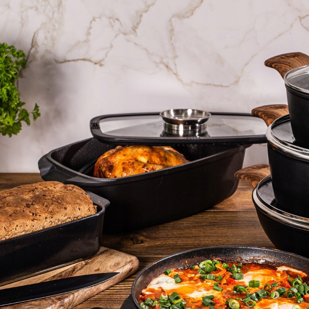 ✅ Пристосований для всіх типів плит і для запікання в духовці(кришка до 180 °C, жаровня до 230 °C)
