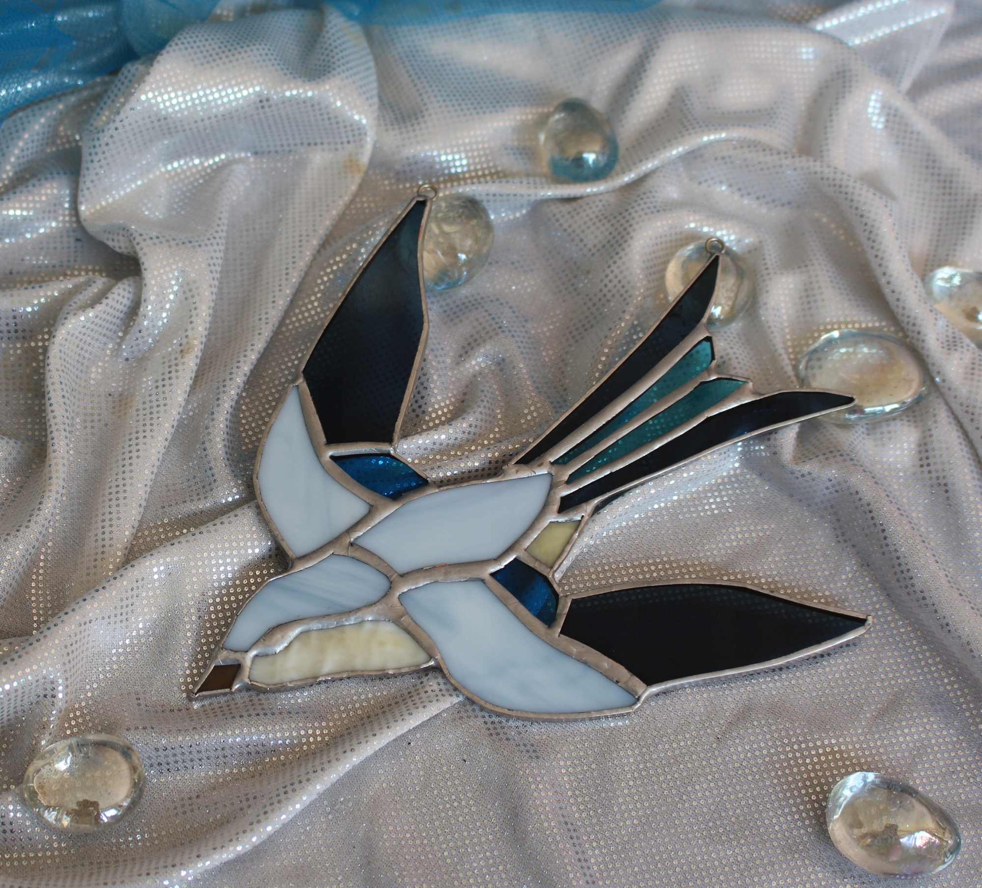 Jaskółka witrażyk Tiffany prezent, ptaki polskie, ptak do powieszenia N5