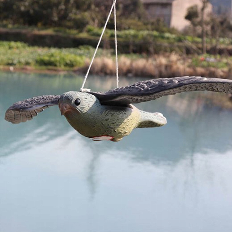 4 Можливість висячого манекена створює враження, що птах знаходиться в польоті, а на вітрі вона також рухається, завдяки якому він є більш реалістичним завойовником голубів чи горобців. Рушуючись на вітрі, статуетка вражає її ефект. Легкість встановлення птаха та можливість повісити з струною дозволяє змінити місце птаха.✅ Zalets