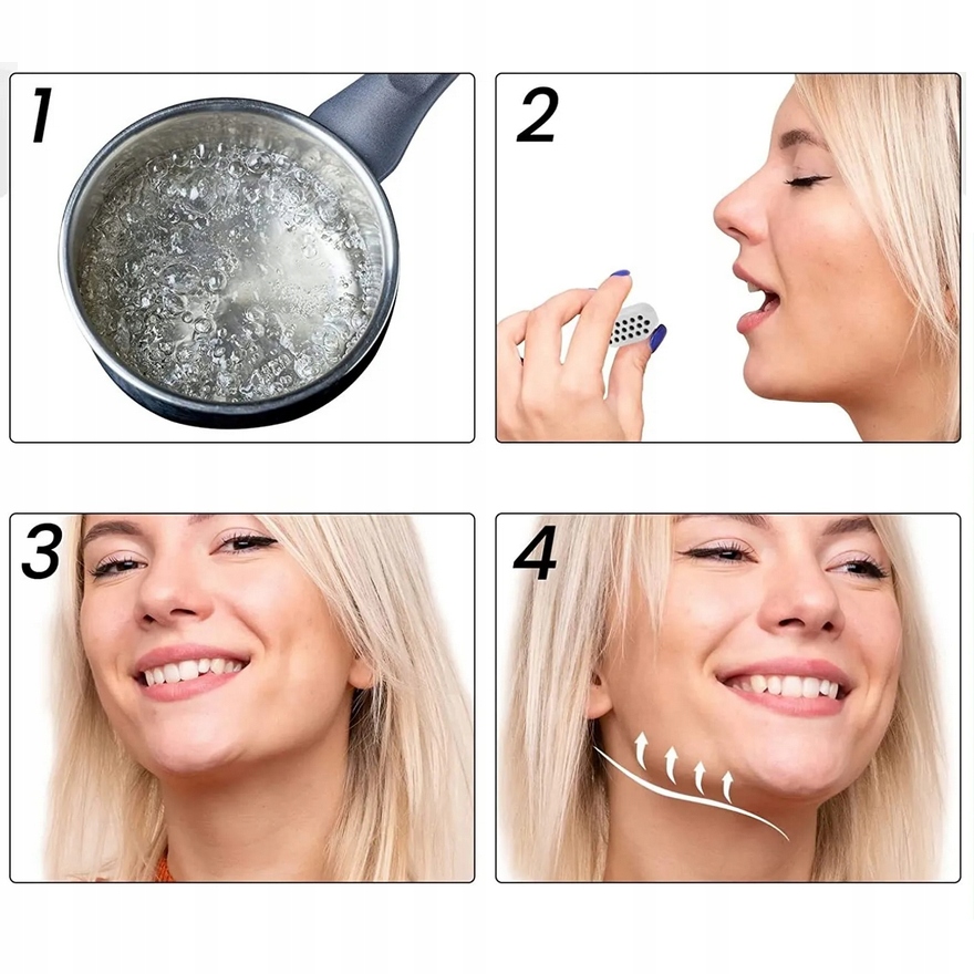 1. Перед використанням, щоб дезінфікувати та підготувати продукт, покладіть вправу щелепи до окропу . Зачекайте деякий час і видаліть його. Потім розмістіть один елемент, що здійснює нижню щелепу з однаковою силою після обох сторін рот між зубами та укусом. Почніть займатися фізичними вправами. Відкрийте рот якомога рідше. Жування пристрою вправ на щелепі 10 хвилин на день. Насолоджуйтесь ефектами! Також пам’ятайте про продукт після вправи і поставте його в безпечне місце.