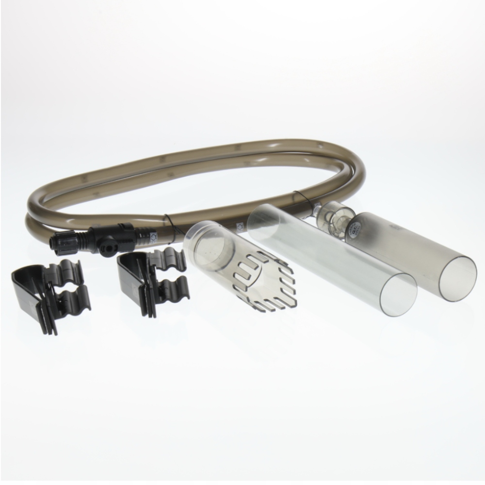 У випадку дрібного піску ви можете відрегулювати всмоктування, піднявши очищувач мулу, щоб що легкий пісок також знову падає вниз. Ситечко в мулоочиснику запобігає випадковому засмоктуванню риби та креветок. Сітчастий фільтр можна зняти для очищення.