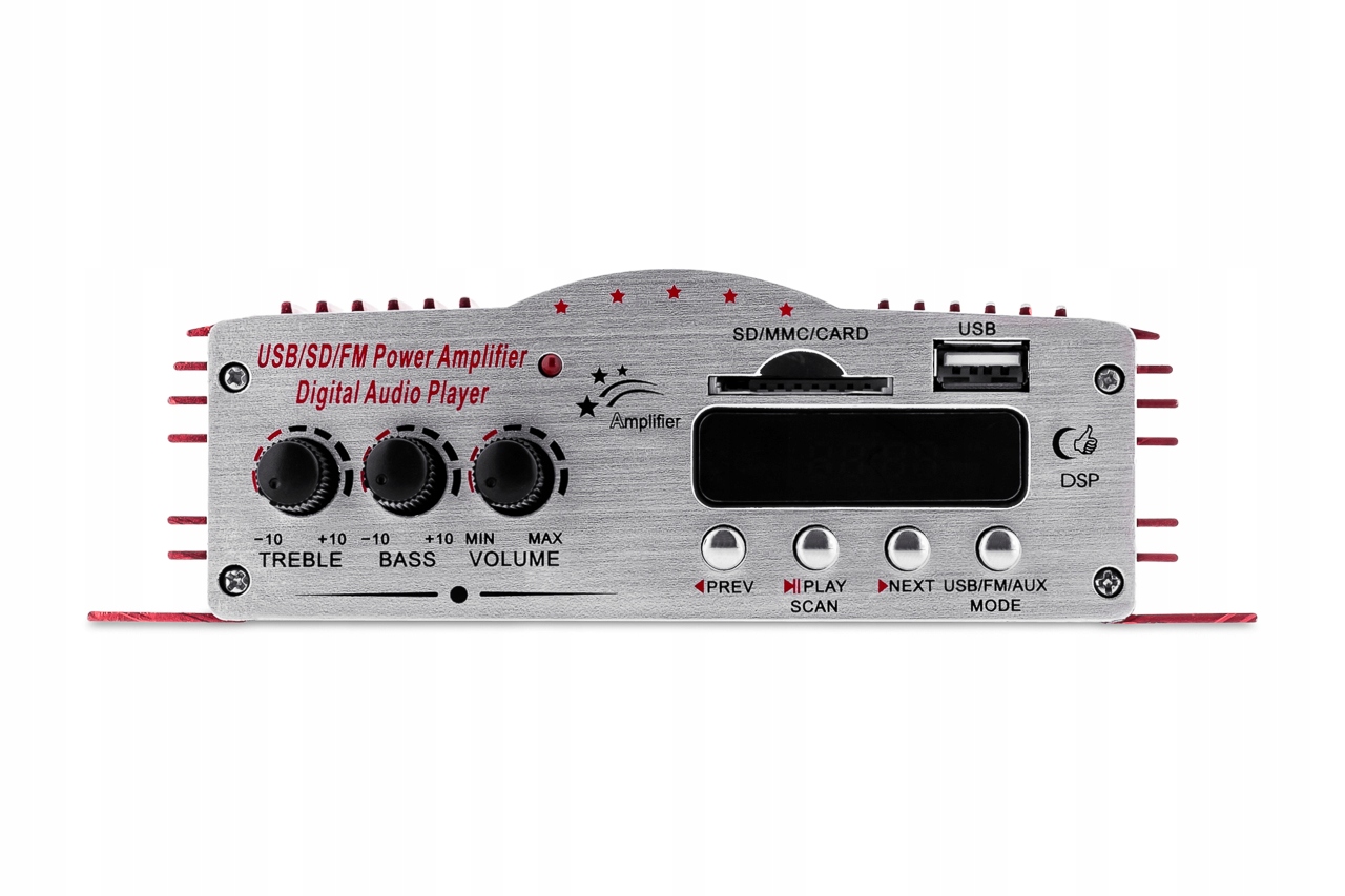 Підсилювач має вхідUSB і SD, завдяки чому ми можемо відтворювати музичні файли у форматі mp3.