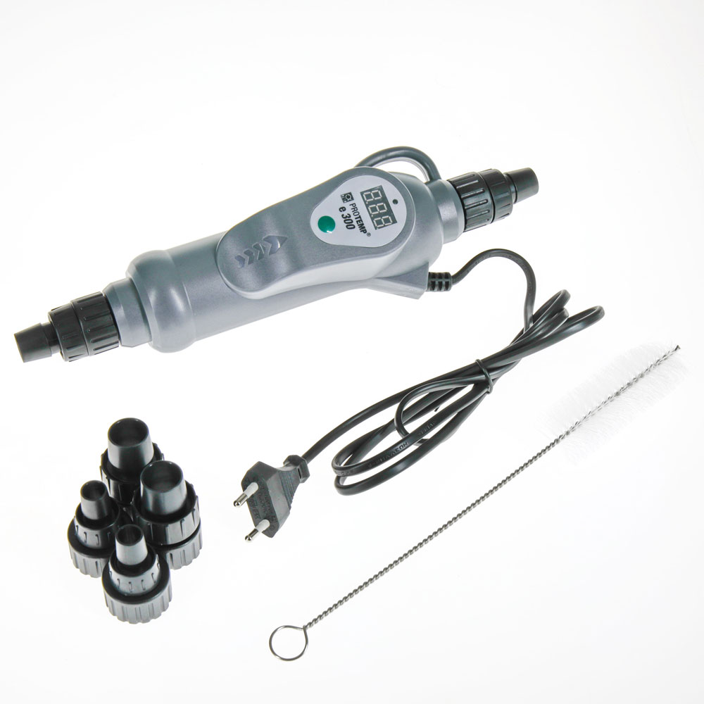 Включає: 1 проточний нагрівач 300 Вт для акваріумів 90-300 л (80-120 см) з шлангами до 12/16, 16/22 та 19/25 мм та очищенням кисті